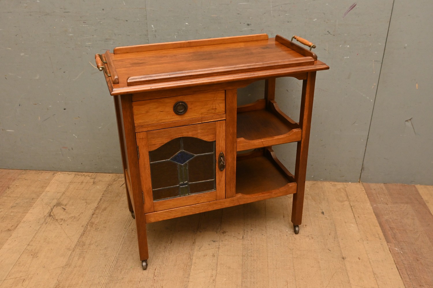 A BLACKWOOD AUTO TROLLEY WITH LEAD LIGHT DOOR (85H X 85W X 45D CM) (LEONARD JOEL DELIVERY SIZE: LARGE)