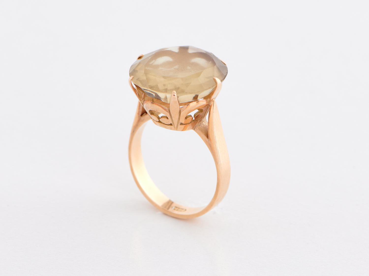A SMOKEY QUARTZ SET RING IN 14CT GOLD, SIZE P, 7.2GMS