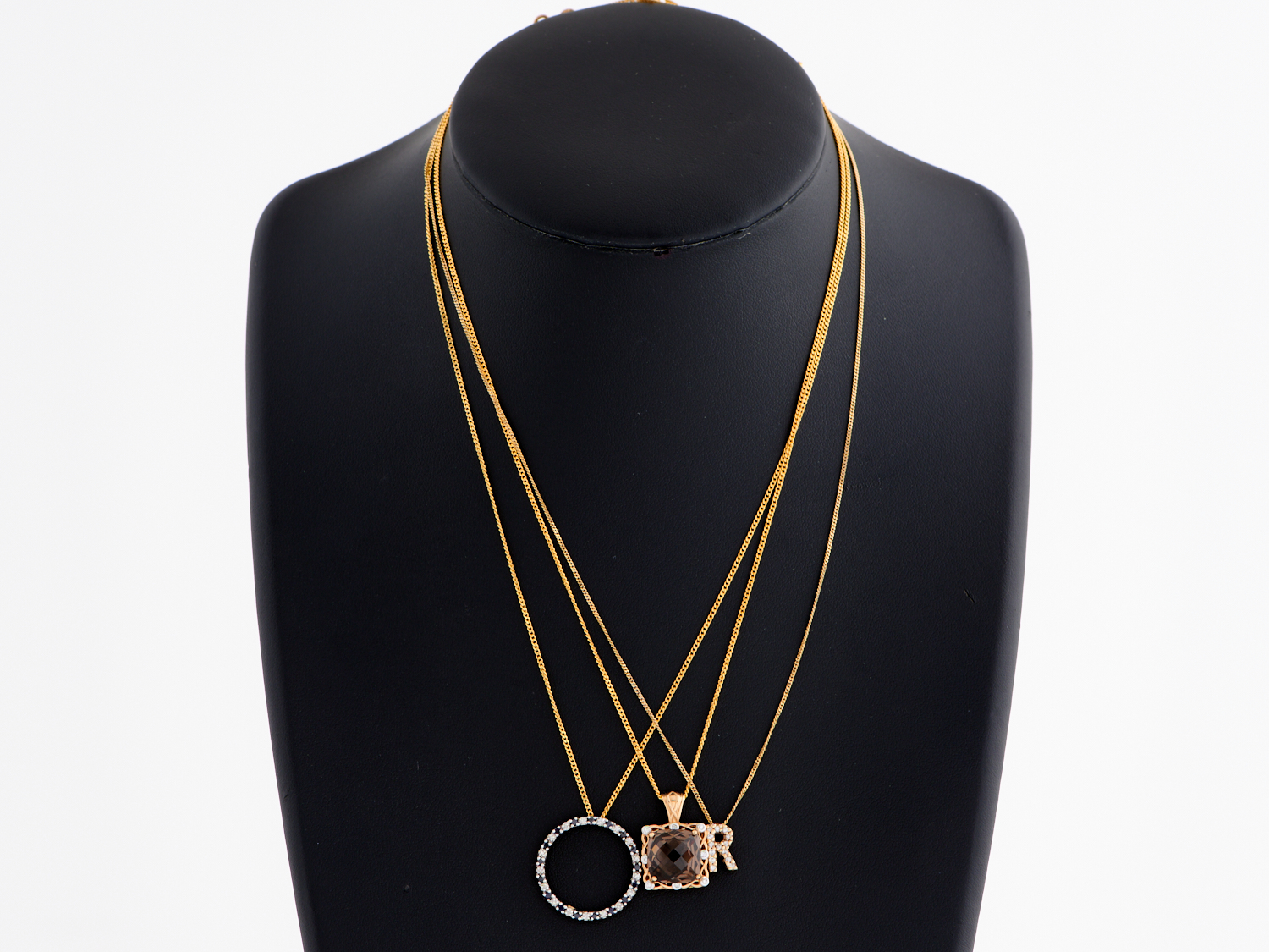THREE DIAMOND AND GEM SET PENDANTS IN 9CT GOLD, INCLUDING ONE WITH A CHAIN IN 9CT GOLD, WEIGHT 7.5GMS (WITHOUT BASE METAL CHAINS)