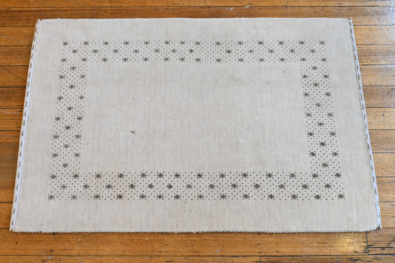 A 100% NEW ZEALAND WOOL DENSE PILE GABBEH RUG IN CREAM TONES, ORIGIN INDIA (A/F) (158 X 103 CM) (LEONARD JOEL DELIVERY SIZE: LARGE)