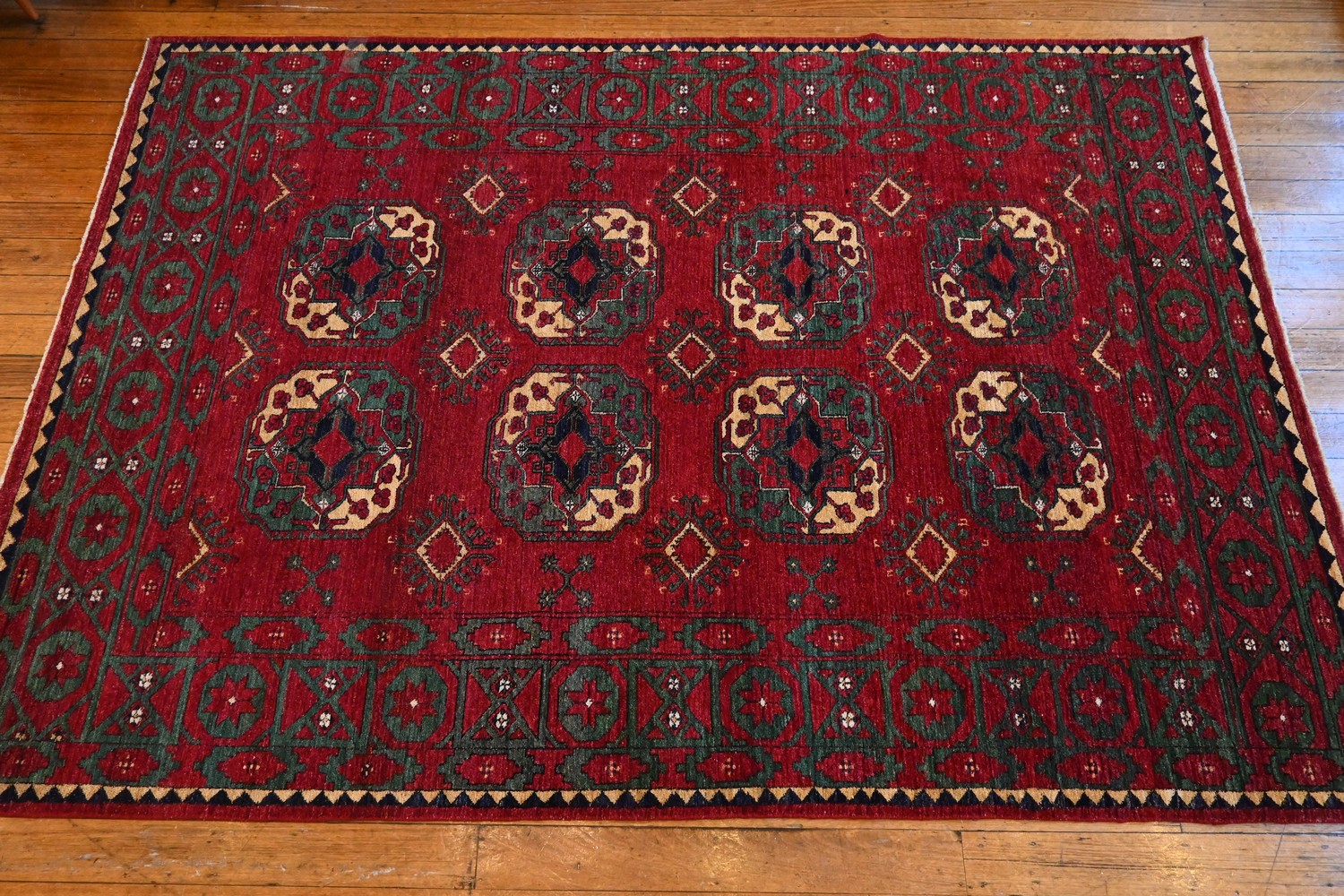A HANDKNOTTED AFGHAN TURKOMAN RUG WITH NATURAL VEGETABLE DYES (284 X 196 CM) (LEONARD JOEL DELIVERY SIZE: X-LARGE)