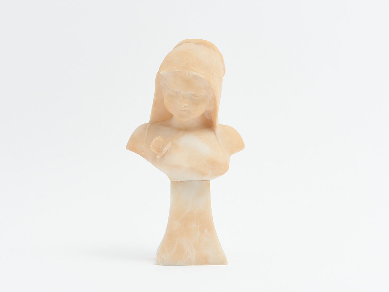 AN ALABASTER BUST OF A GIRL WITH BUTTERFLY H.23.5CM, LEONARD JOEL LOCAL DELIVERY: SMALL