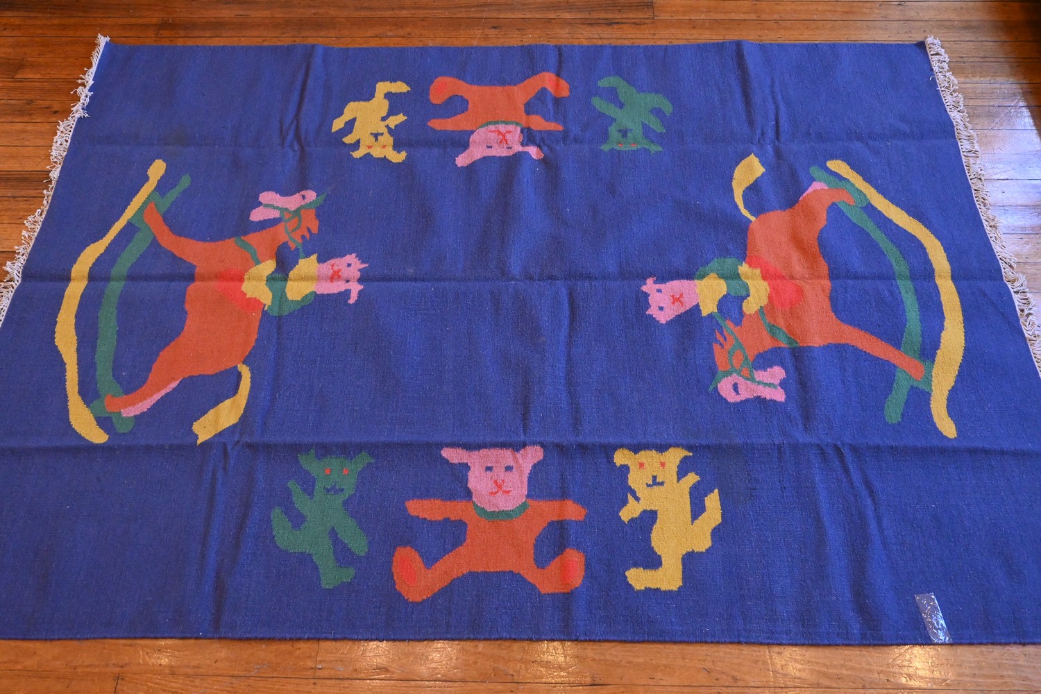 A HANDWOVEN INDIAN WOOLEN DURRHIE WITH HORSE MOTIF (300 X 204 CM) (LEONARD JOEL DELIVERY SIZE: LARGE)