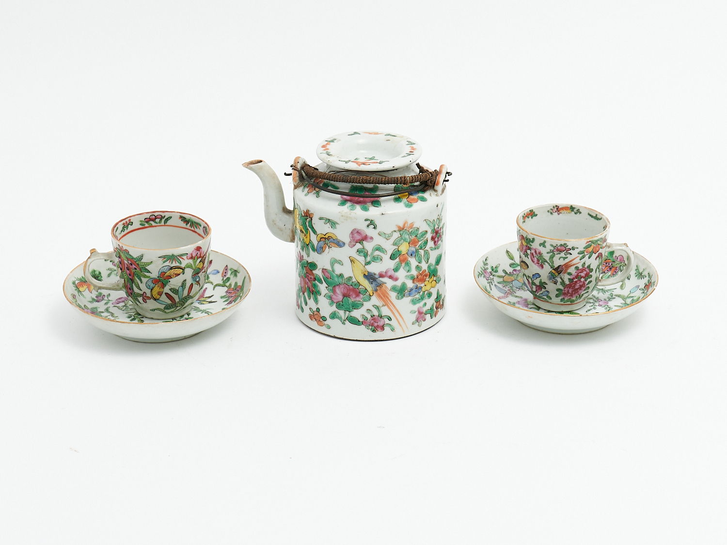 NONYA STYLE TEA CUPS AND SAUCERS TOGETHER WITH TEAPOT, LEONARD JOEL LOCAL DELIVERY: SMALL