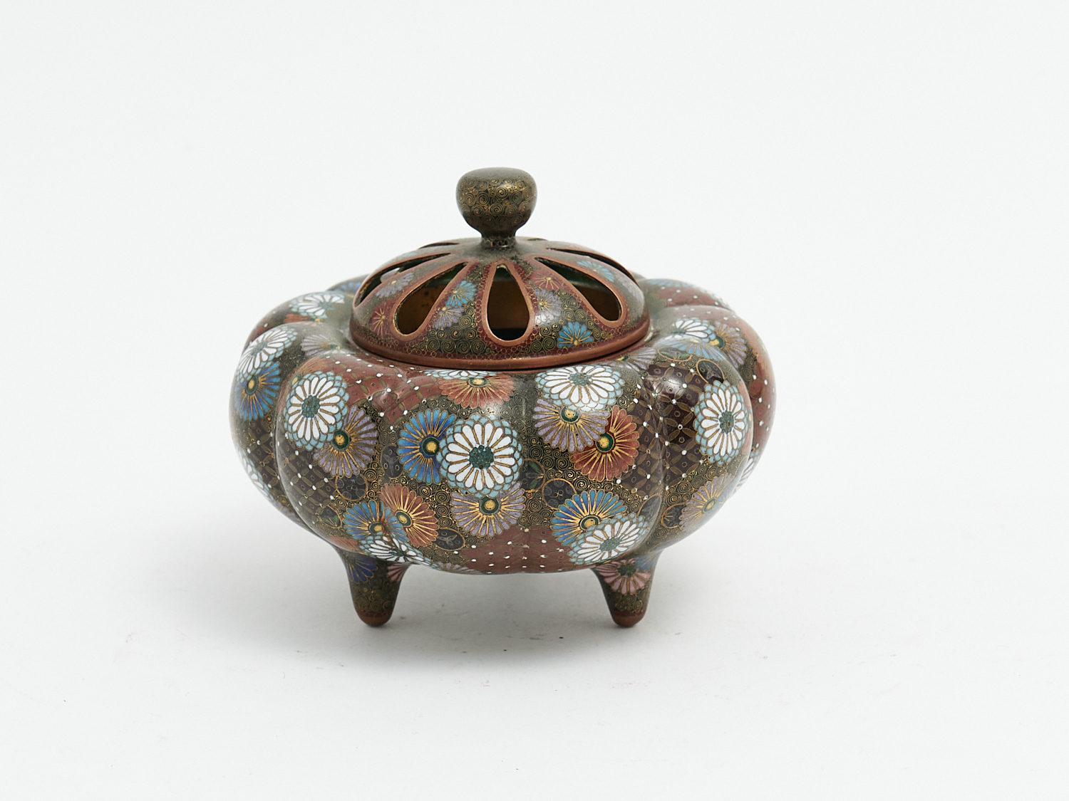 A CLOISONNE CENSOR WITH FLORAL DECORATION H.9.5CM, LEONARD JOEL HOME DELIVERY SIZE: SMALL