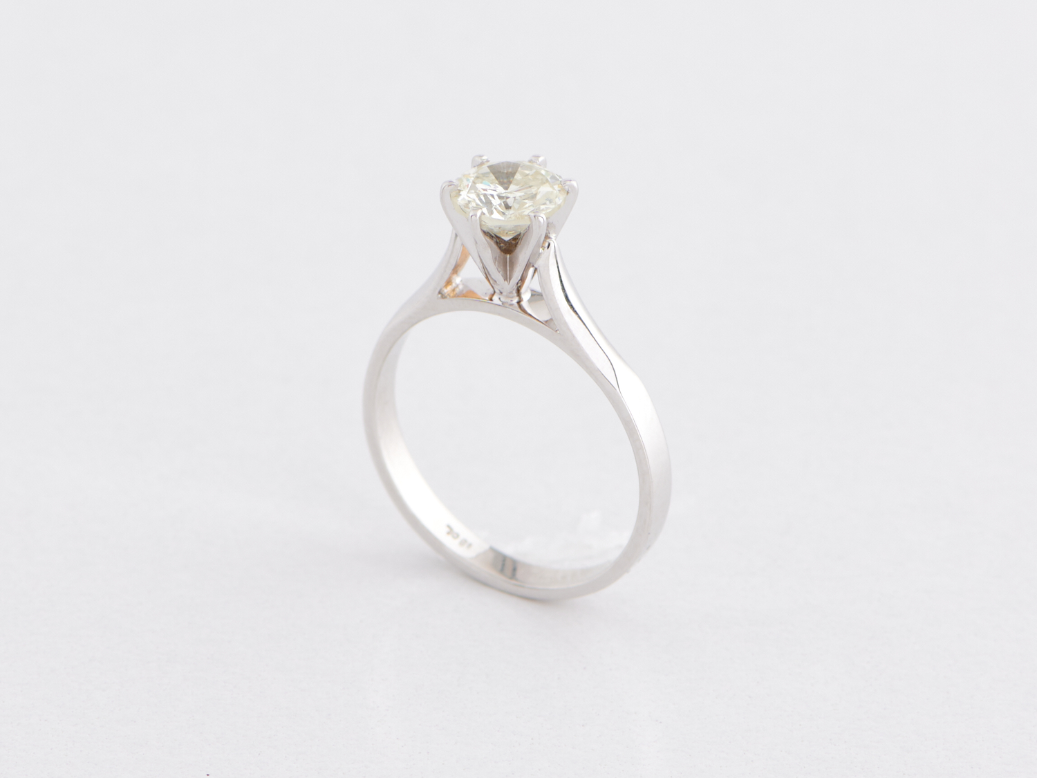 A DIAMOND RING SET RING IN 18CT WHITE GOLD, CENTRING A CLAW-SET BRILLIANT-CUT DIAMOND WEIGHING 1.50 CARATS, FLANKED BY FURTHER DIAMO...