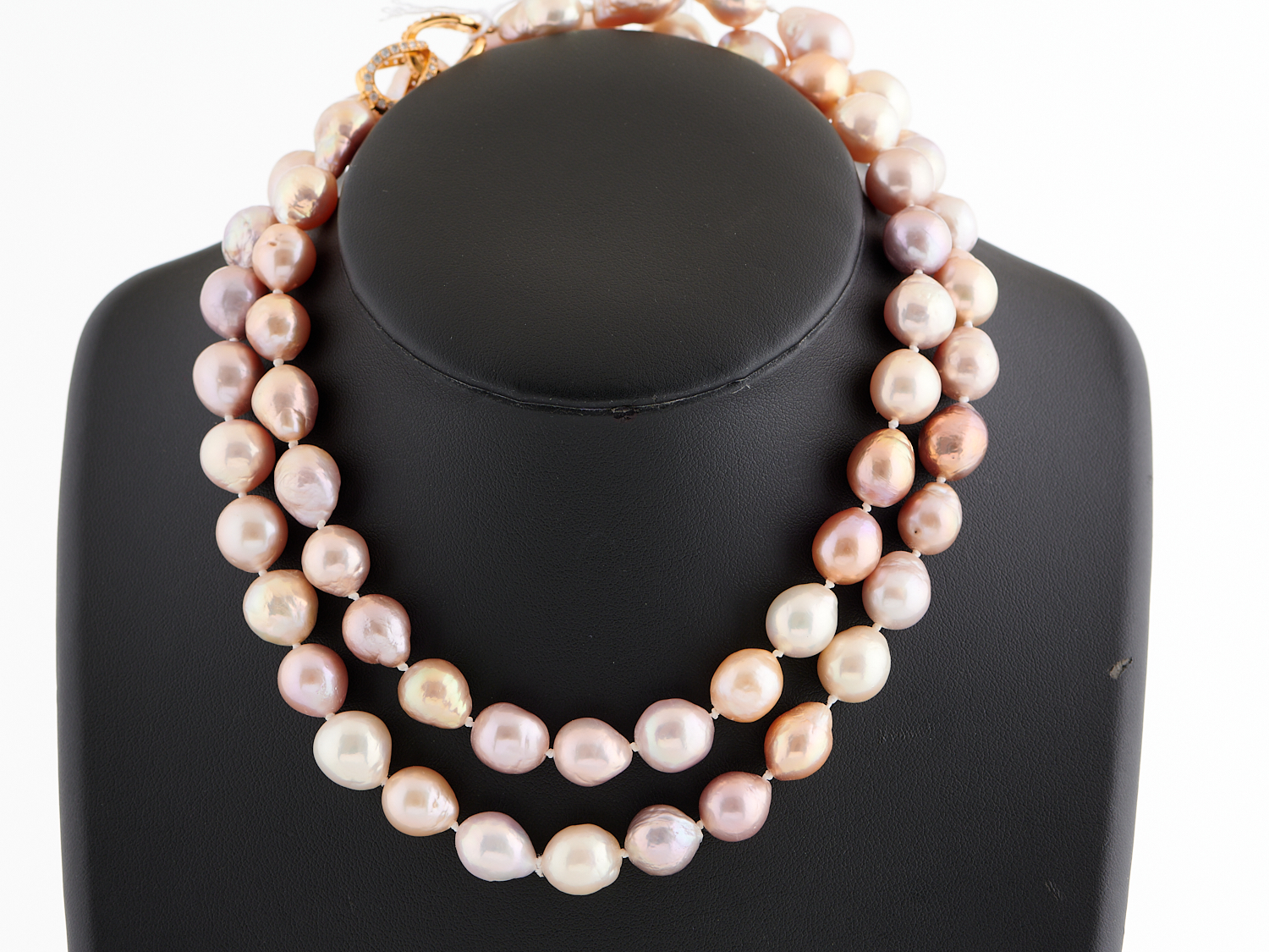 A FRESHWATER CULTURED PEARL NECKLACE TO A GOLD COMPOSITE CLASP, PEARL SIZE APPROXIMATELY 12MM, LENGTH 780MM