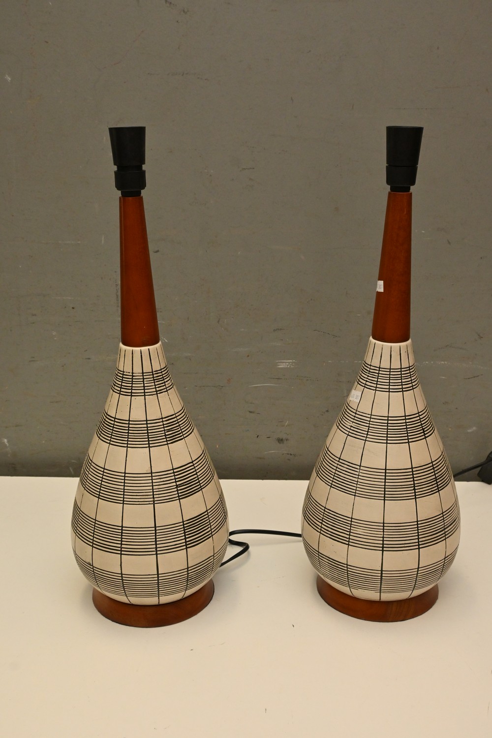 PAIR OF VINTAGE WOODEN AND CERAMIC LAMP BASES (56H CM) (LEONARD JOEL DELIVERY SIZE: MEDIUM)