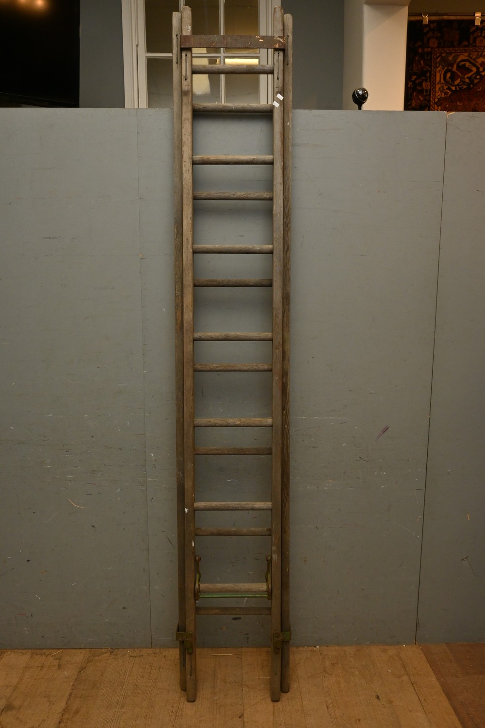 A 1950S T KENNETT WOODEN LADDER (A/F) (242H X 41W CM) (LEONARD JOEL DELIVERY SIZE: X-LARGE)