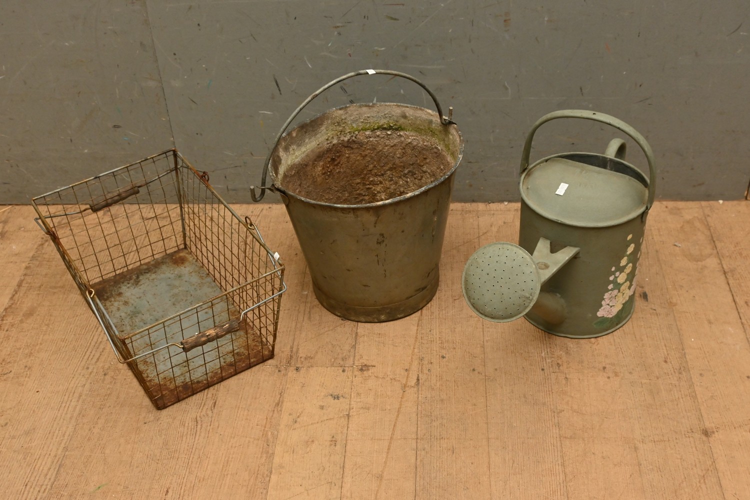 A GROUP OF THREE GALVANISED METAL ITEMS (A/F) (LEONARD JOEL DELIVERY SIZE: MEDIUM)