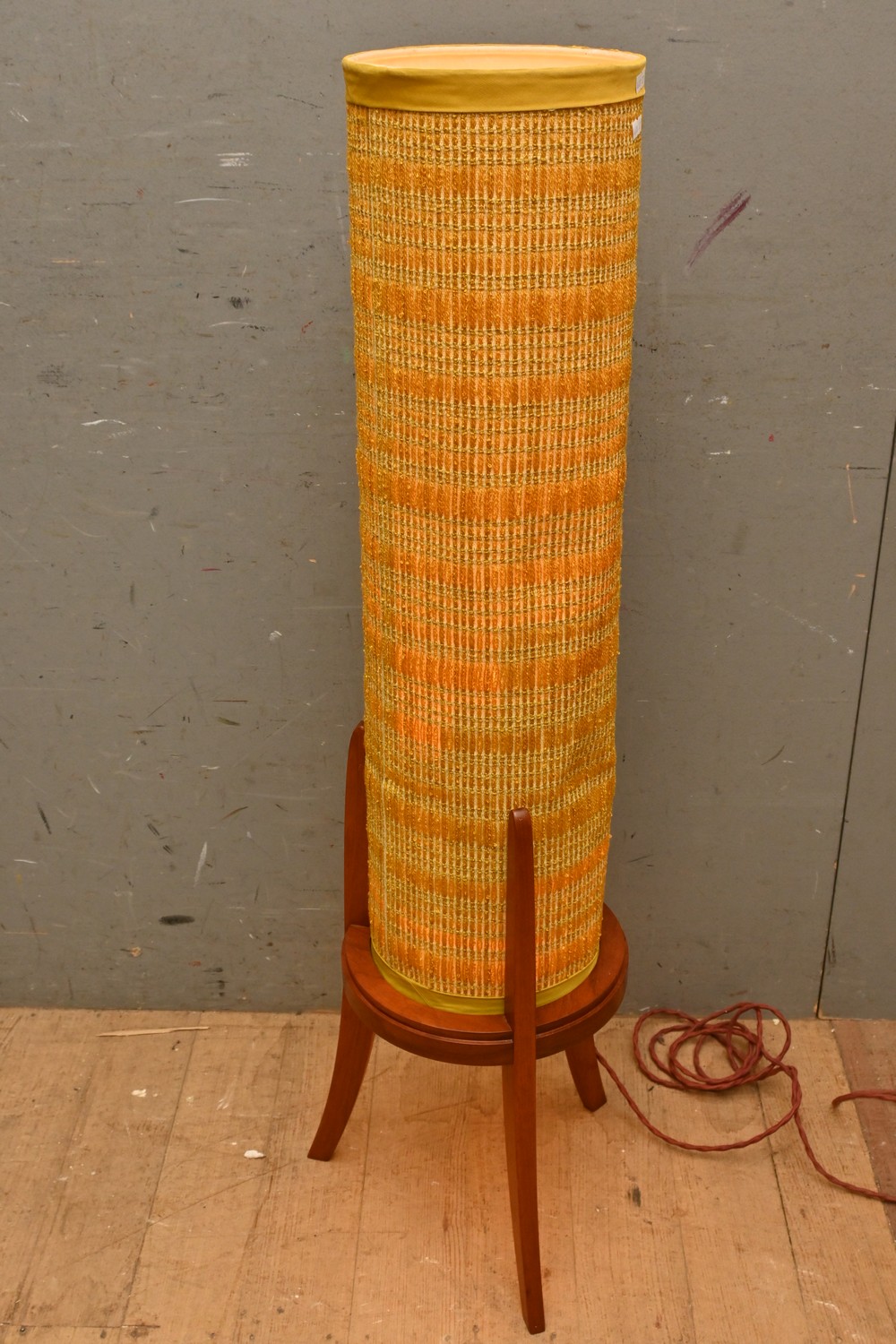 A MID CENTURY TEAK BASED MATERIAL ROCKET LAMP (A/F) ( 110H CM) (LEONARD JOEL DELIVERY SIZE: LARGE)