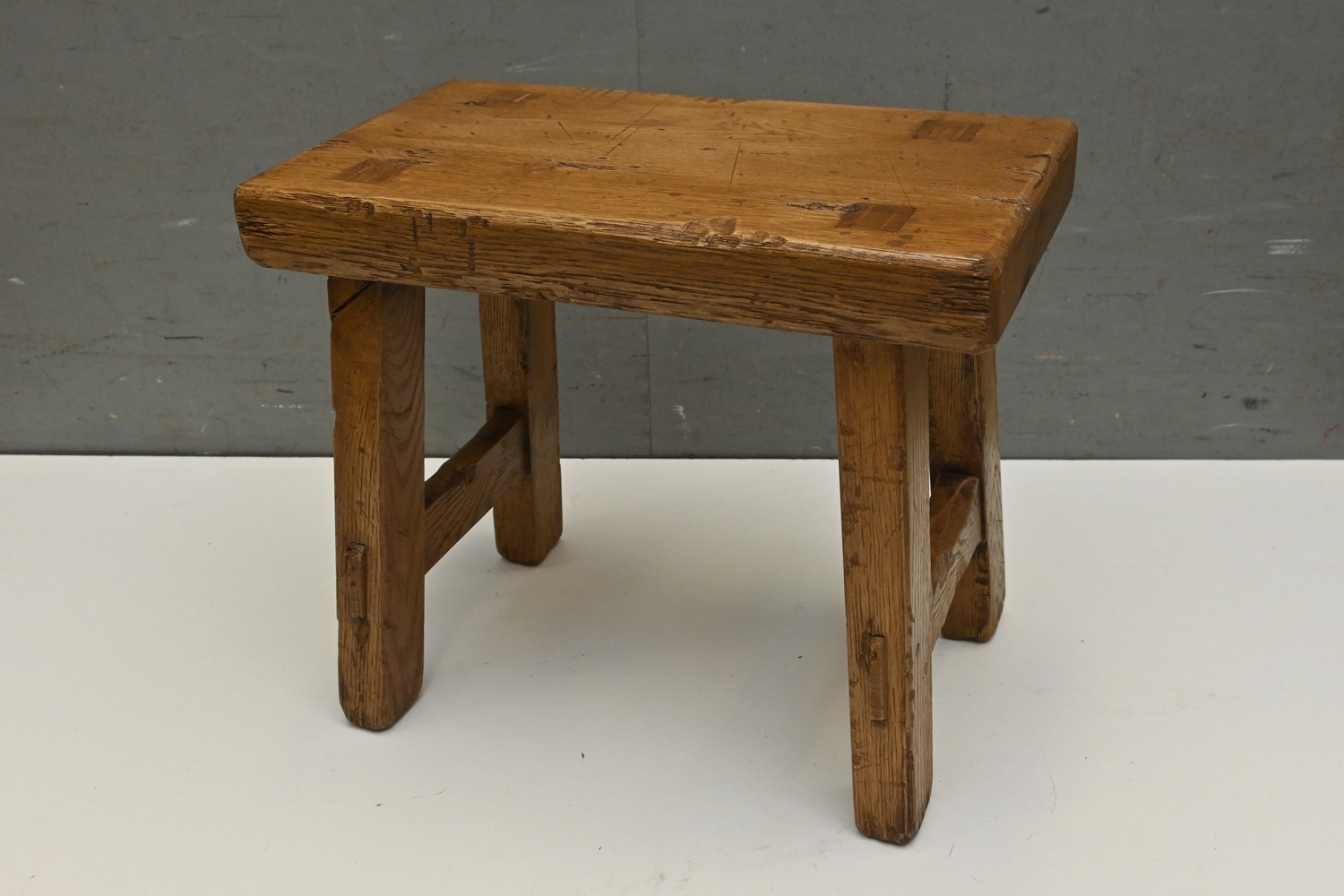 A FRECNH STYLE OAK MILKING STOOL (35H X 41W X 24D CM) (LEONARD JOEL DELIVERY SIZE: MEDIUM)