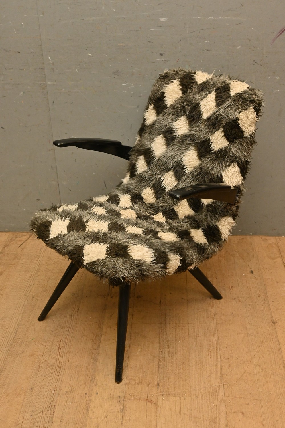 A 1960'S EUROPEAN ARMCHAIR WITH FAUX FUR UPHOLSTERY (A/F) (82H X 61W X 78D CM) (LEONARD JOEL DELIVERY SIZE: LARGE)
