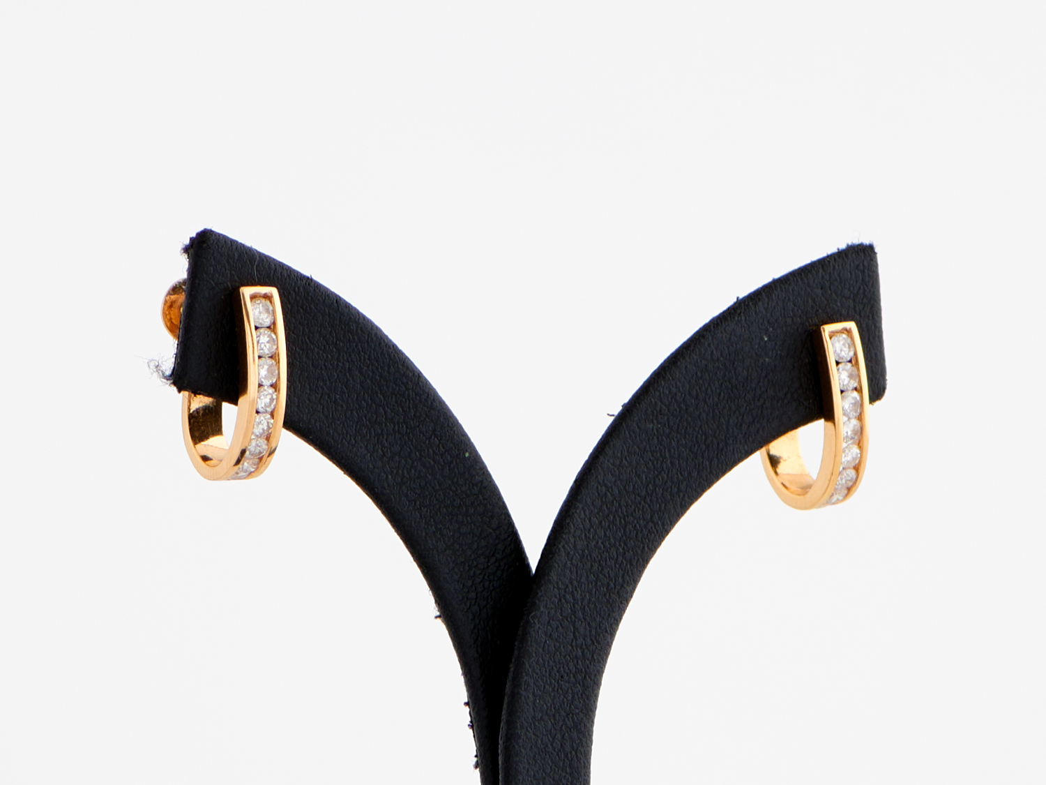 A PAIR OF DIAMOND HUGGIE EARRINGS IN 14CT GOLD TO SCREWBACK FITTINGS, WEIGHT 3.4GMS.