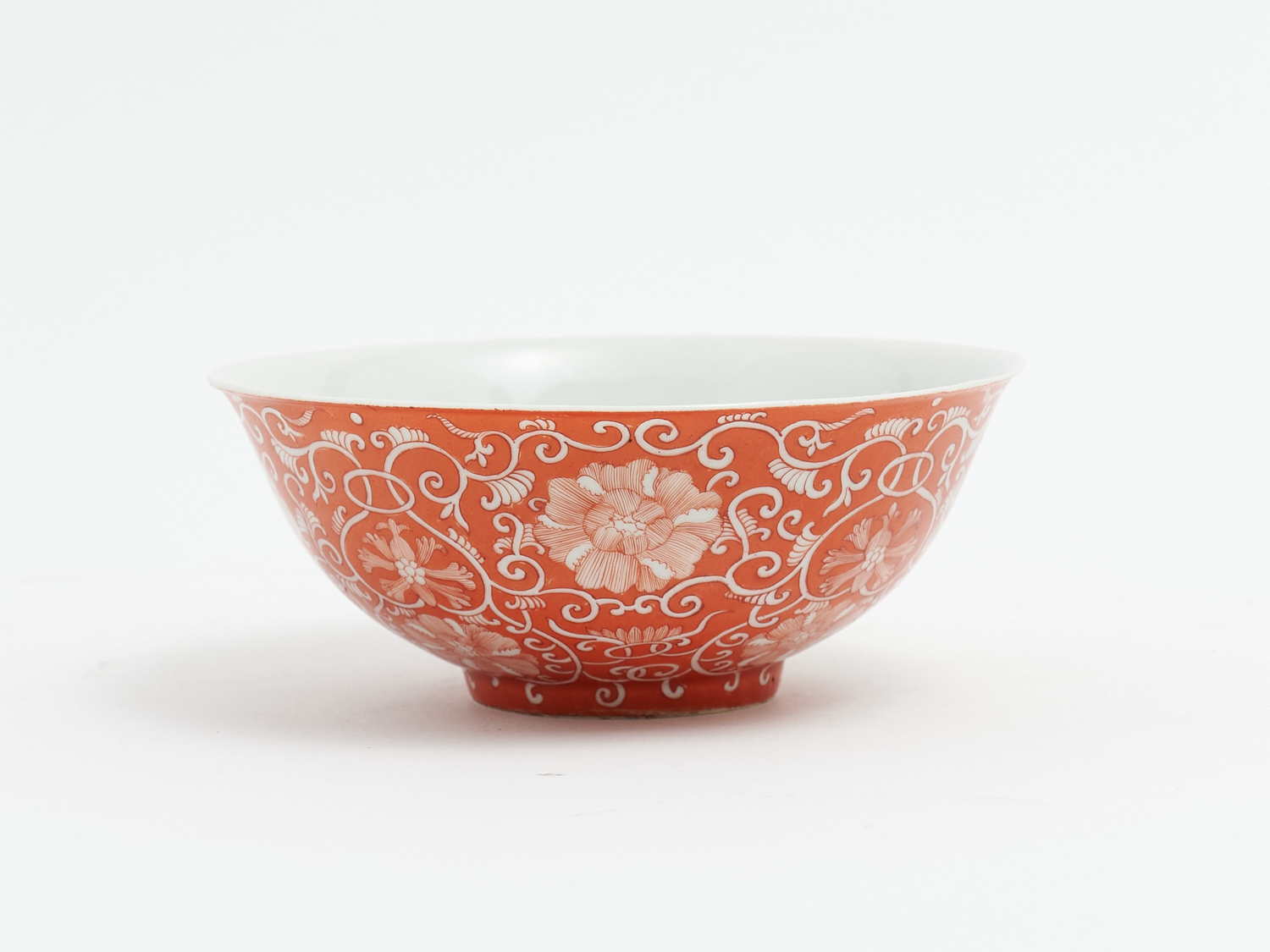 A CHINESE CORAL GROUND BOWL, TONGZHI MARK 19TH-20TH CENTURY DIA.16.5CM, LEONARD JOEL LOCAL DELIVERY: SMALL