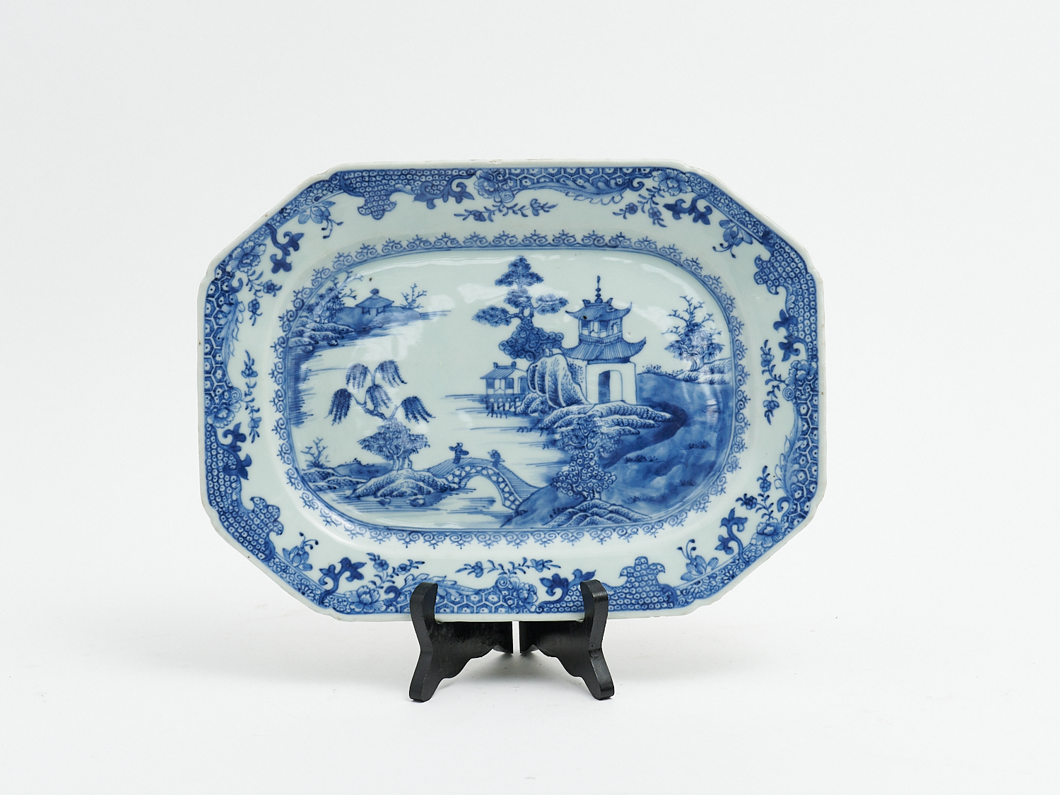 A CHINESE EXPORT WARE BLUE AND WHITE OCTAGONAL PLATTER W.31CM X D.23CM, LEONARD JOEL LOCAL DELIVERY: SMALL