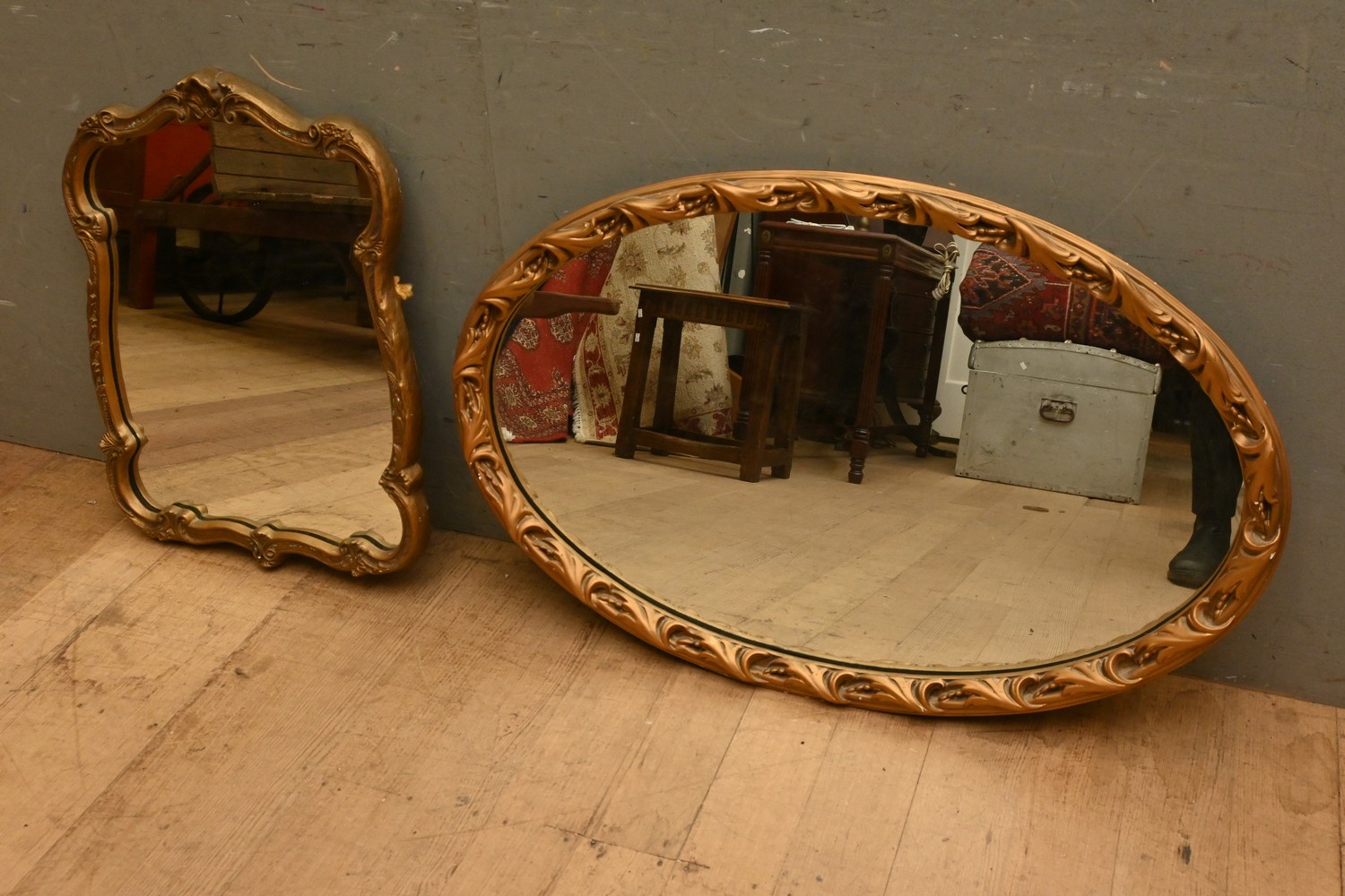 TWO GILT-FRAMED WALL MIRRORS (A/F) (67H X 50W CM) (LEONARD JOEL DELIVERY SIZE: LARGE)