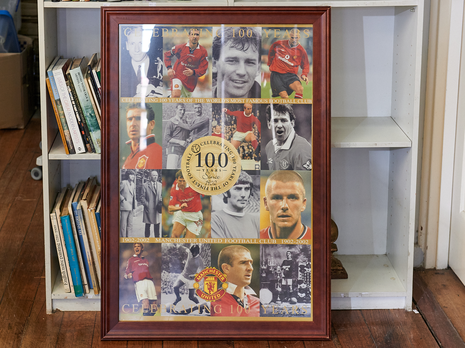 A MANCHESTER UNITED FRAMED POSTER H.104CM X W.71CM, LEONARD JOEL LOCAL DELIVERY: MEDIUM