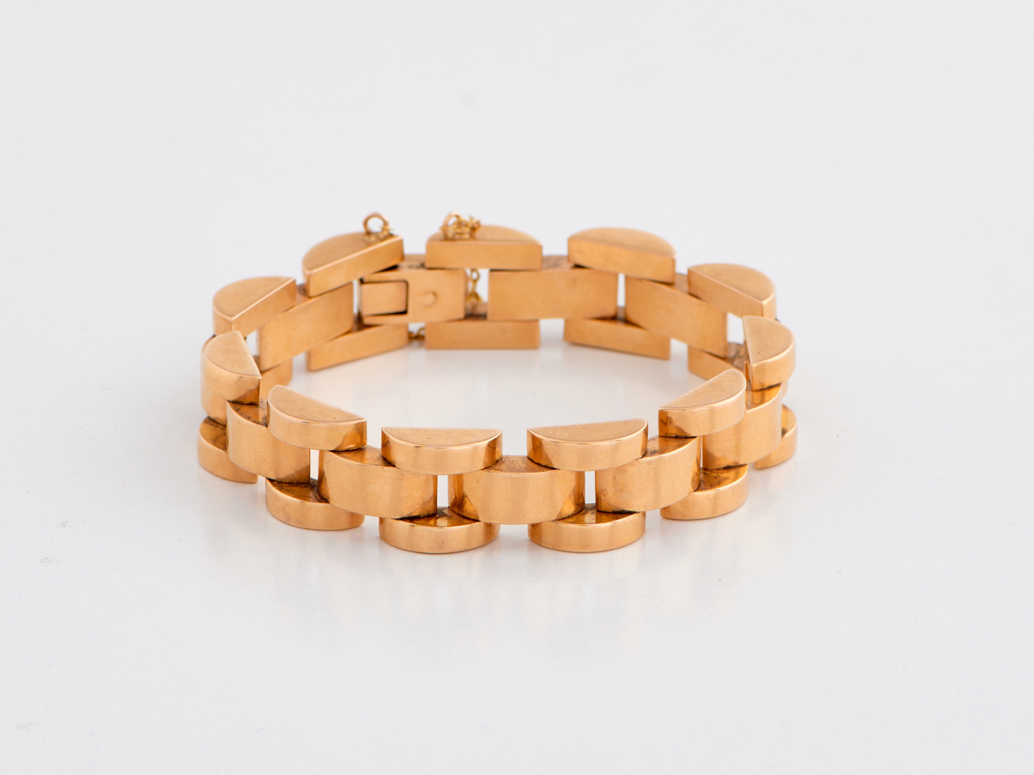 A RETRO STYLE BRACELET IN 18CT GOLD, WIDTH 13MM, LENGTH 170MM, WEIGHT 38.8GMS