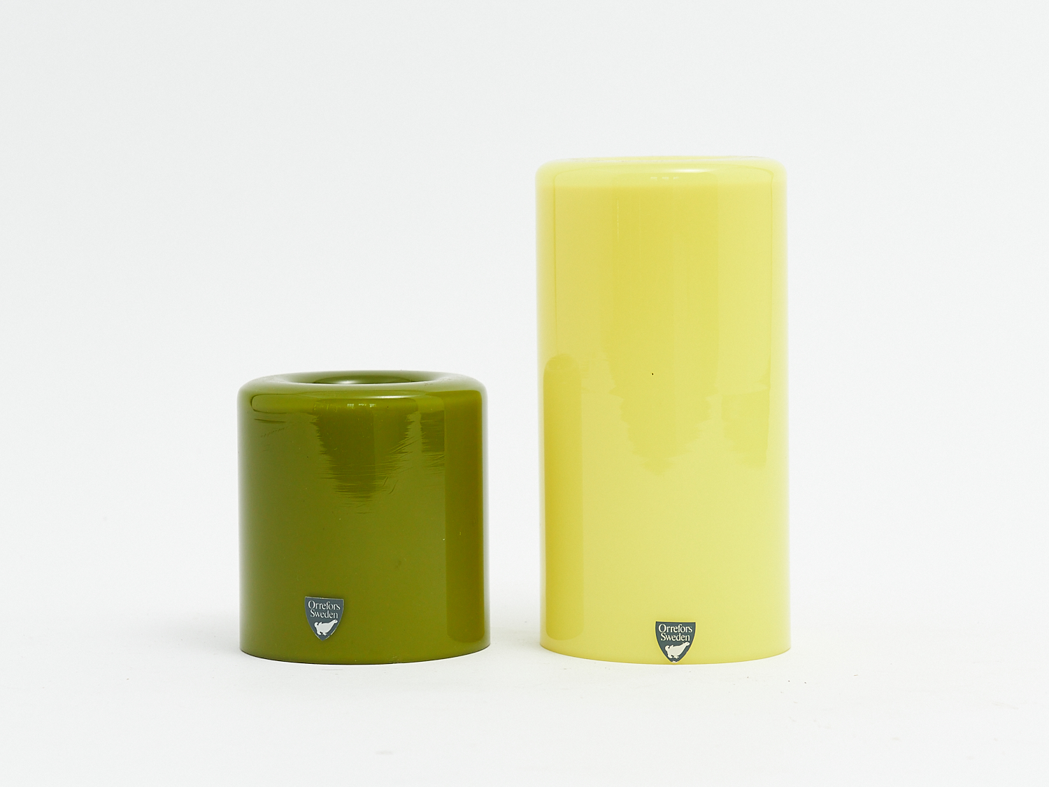 TWO ORREFORS VOTIVE CANDLE HOLDERS BY OWE ELVIN H.15.5CM (TALLEST), LEONARD JOEL LOCAL DELIVERY: SMALL