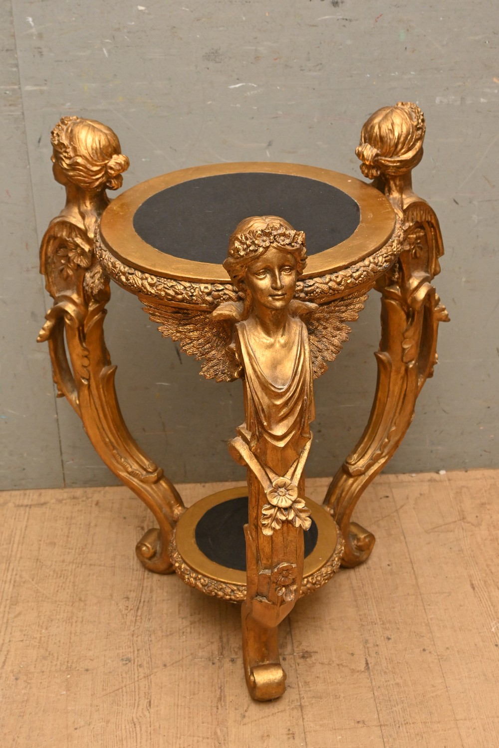 A NEO-CLASSICAL GILT CIRCULAR OCCASIONAL TABLE / STAND WITH MARBLE-INSET TOP AND UNDER-TIER (77H X 50D CM) (LEONARD JOEL DELIVERY SIZE: X-LARGE)