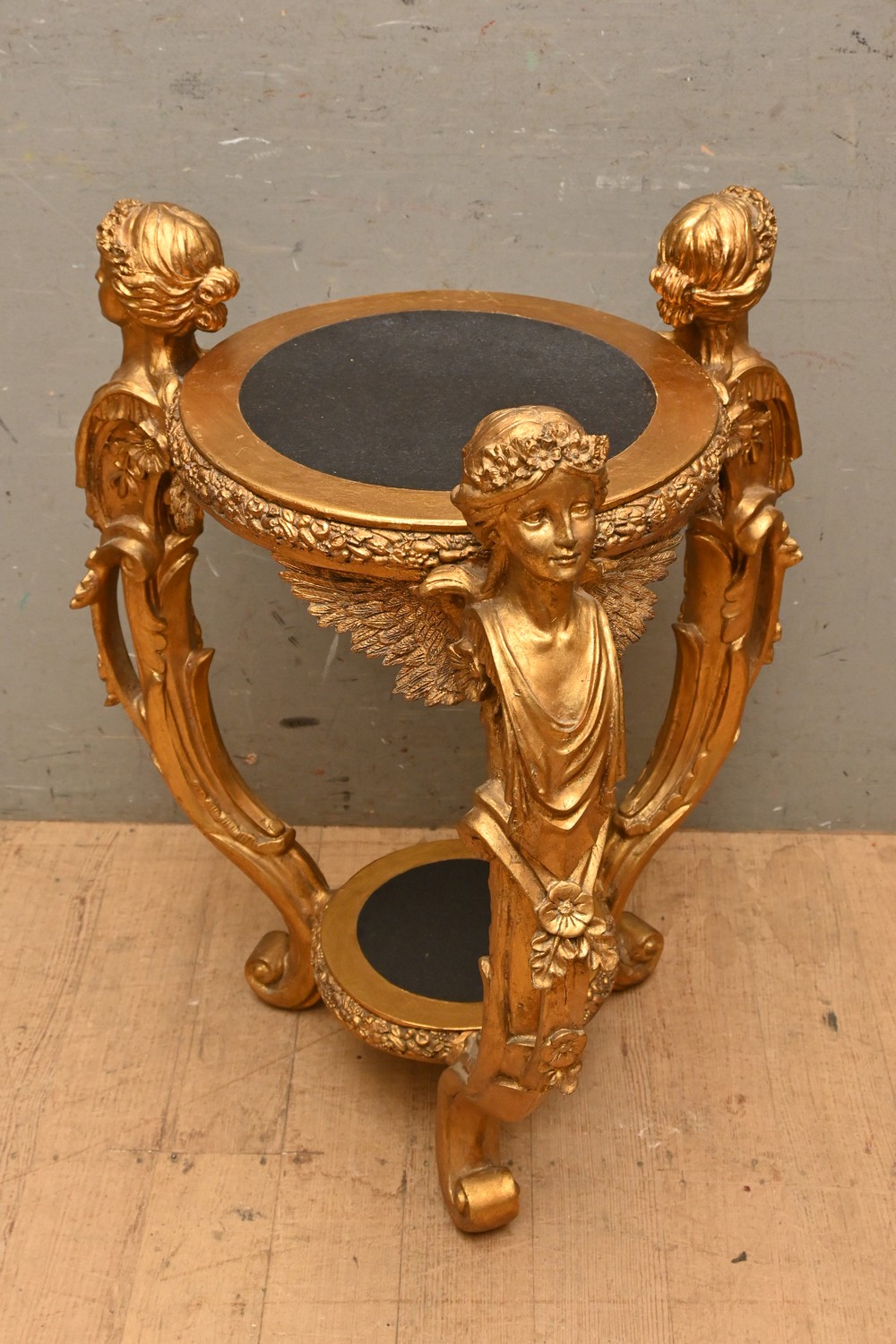 A NEO-CLASSICAL GILT CIRCULAR OCCASIONAL TABLE / STAND WITH MARBLE-INSET TOP AND UNDER-TIER (77H X 50D CM) (LEONARD JOEL DELIVERY SIZE: X-LARGE)