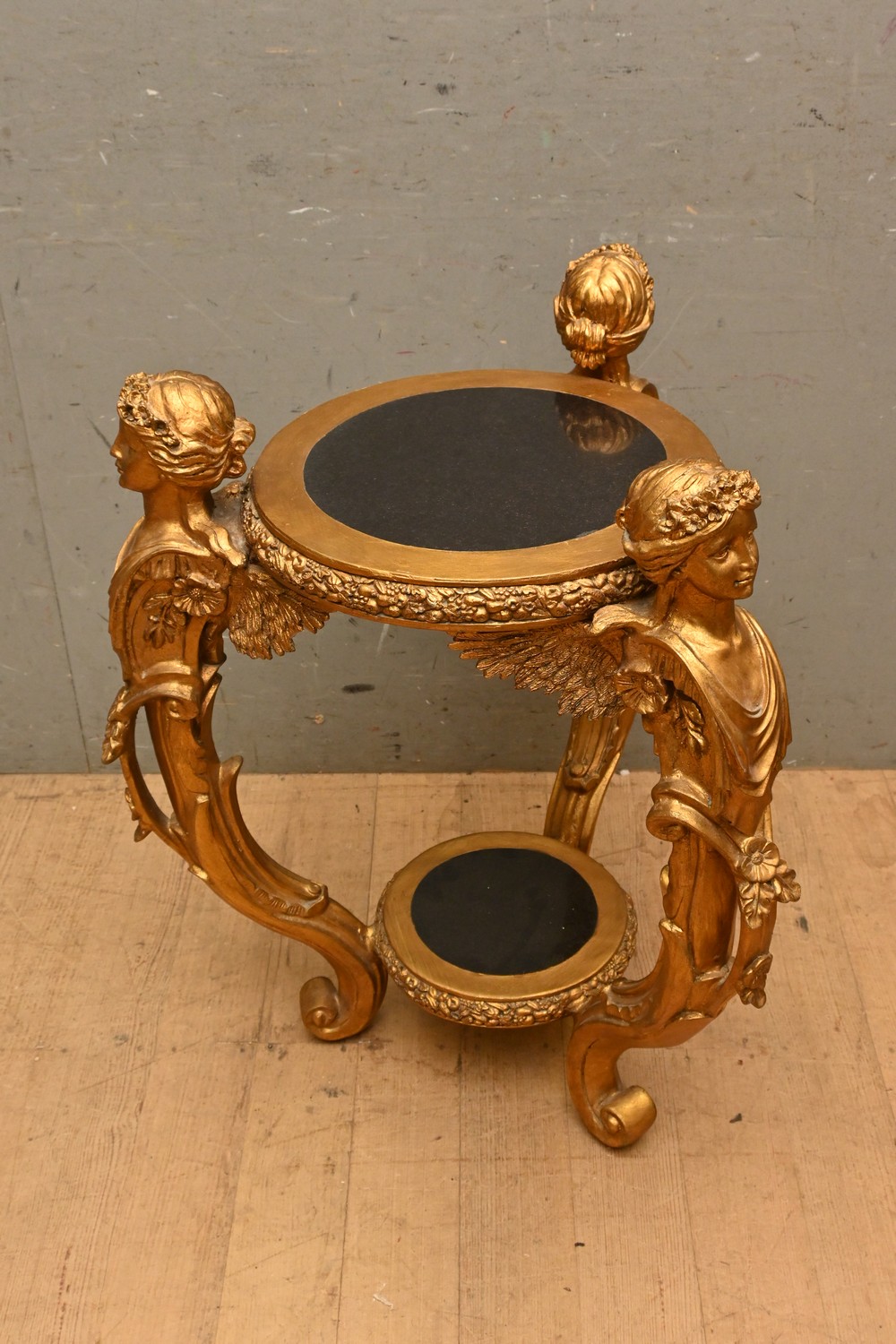 A NEO-CLASSICAL GILT CIRCULAR OCCASIONAL TABLE / STAND WITH MARBLE-INSET TOP AND UNDER-TIER (77H X 50D CM) (LEONARD JOEL DELIVERY SIZE: X-LARGE)
