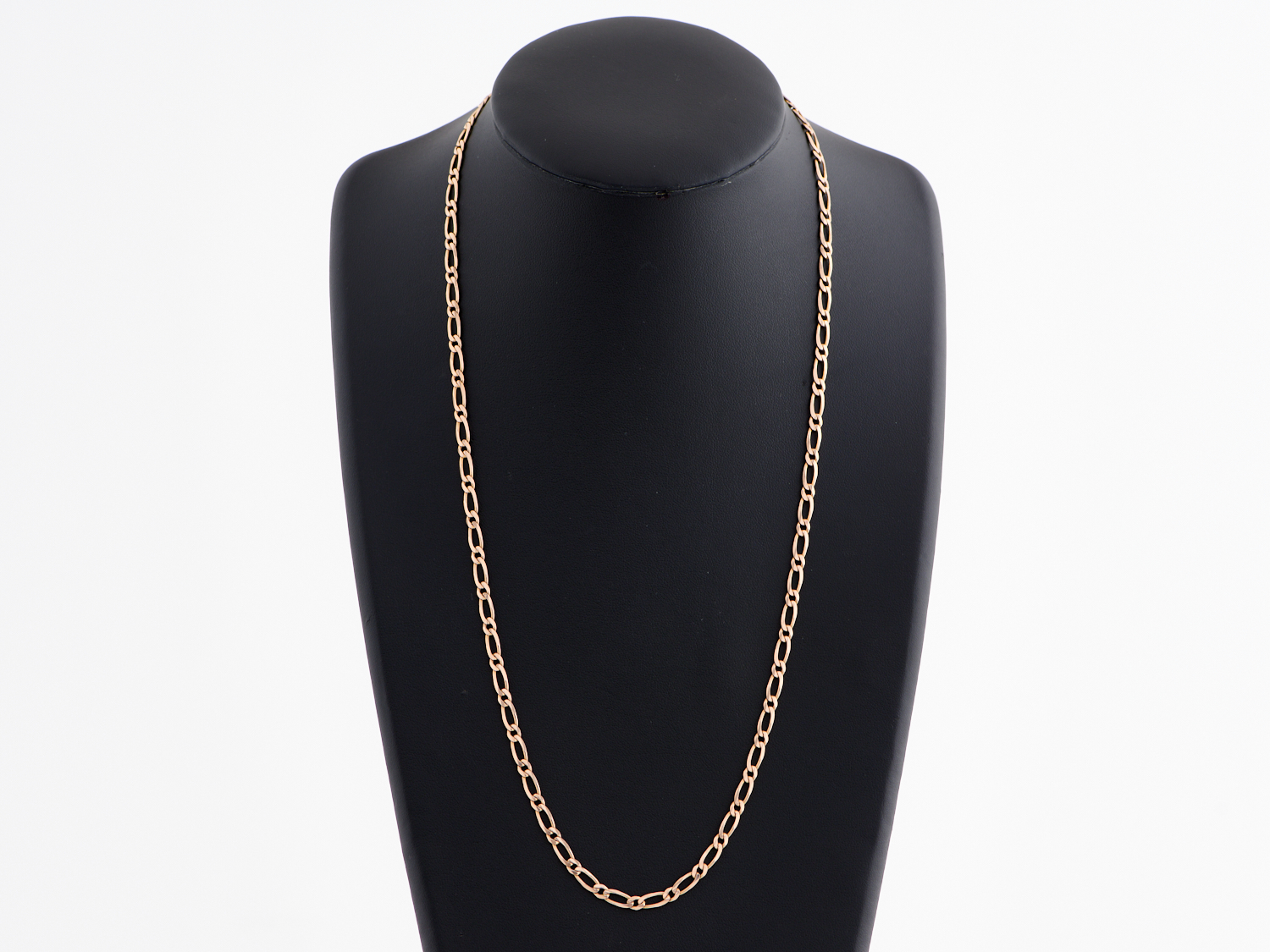 AN ELONGATED LINK CHAIN NECKLACE IN 9CT GOLD, LENGTH 710MM, WEIGHT 13.9GMS