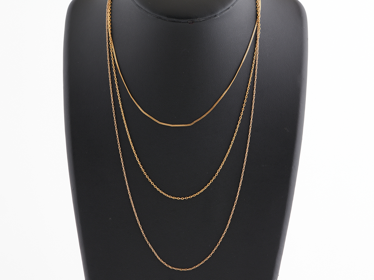 THREE FINE CHAIN NECKLACE IN GOLD, INCLUDING ONE IN 18CT GOLD (3.3GMS) AND TWO IN 9CT GOLD (3.5GMS)