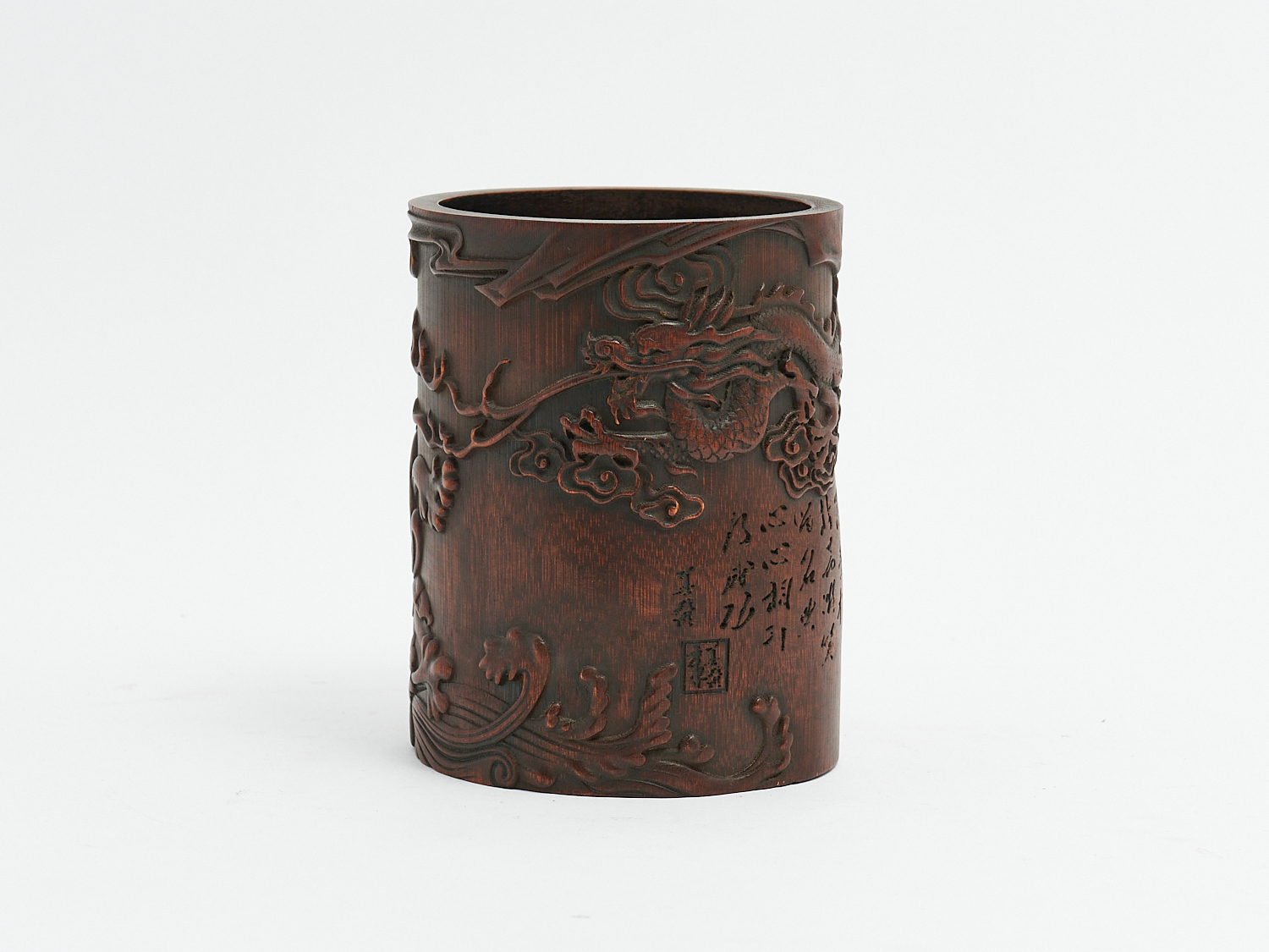 A CHINESE CARVED BAMBOO BRUSH POT H.16.5CM, LEONARD JOEL LOCAL DELIVERY: SMALL