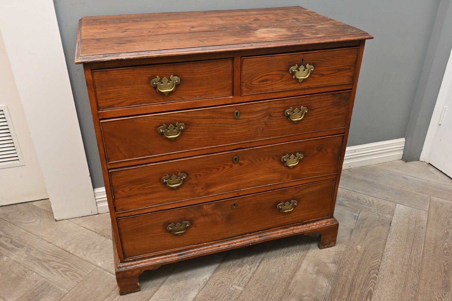 A GEORGE III OAK FIVE DRAWER CHEST OF DRAWERS (A/F) (95H X 95W X 53D CM) (LEONARD JOEL DELIVERY SIZE: X-LARGE)