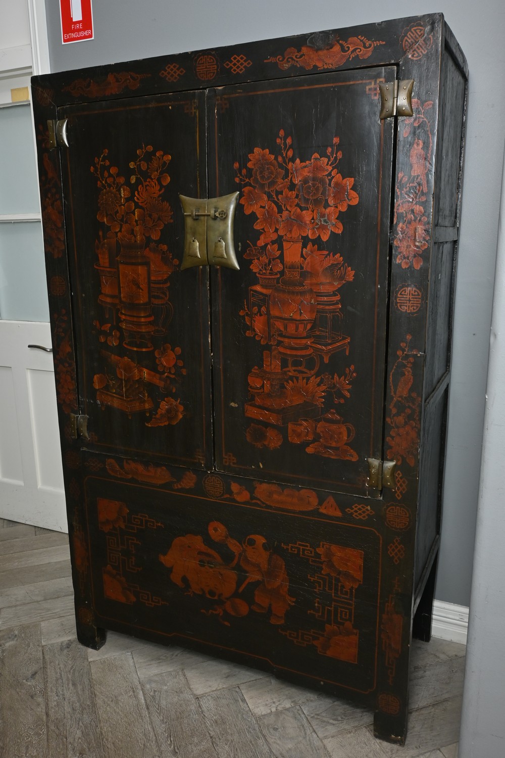 A CHINESE INLAID CABINET (A/F) (190H X 118W X 58D CM) (THIS HEAVY ITEM MUST BE REMOVED BY CLIENTS OR CARRIERS AT THE CUSTOMERS EXPENSE. LEONARD JOEL STAFF CANNOT ASSIST CARRYING THIS ITEM)