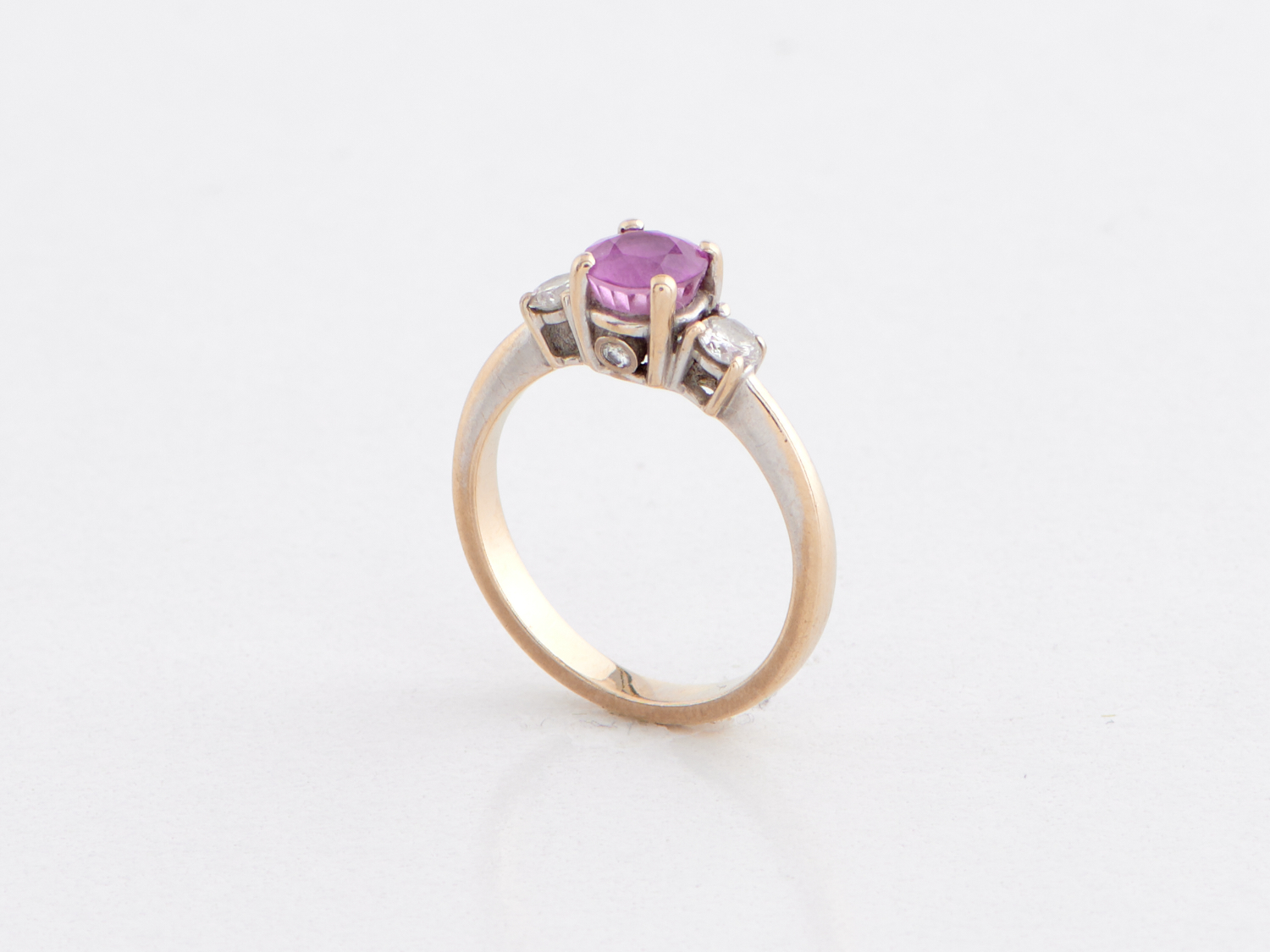 A PINK SAPPHIRE AND DIAMOND RING IN 18CT WHITE GOLD, RING SIZE L, WEIGHT 3.4GMS