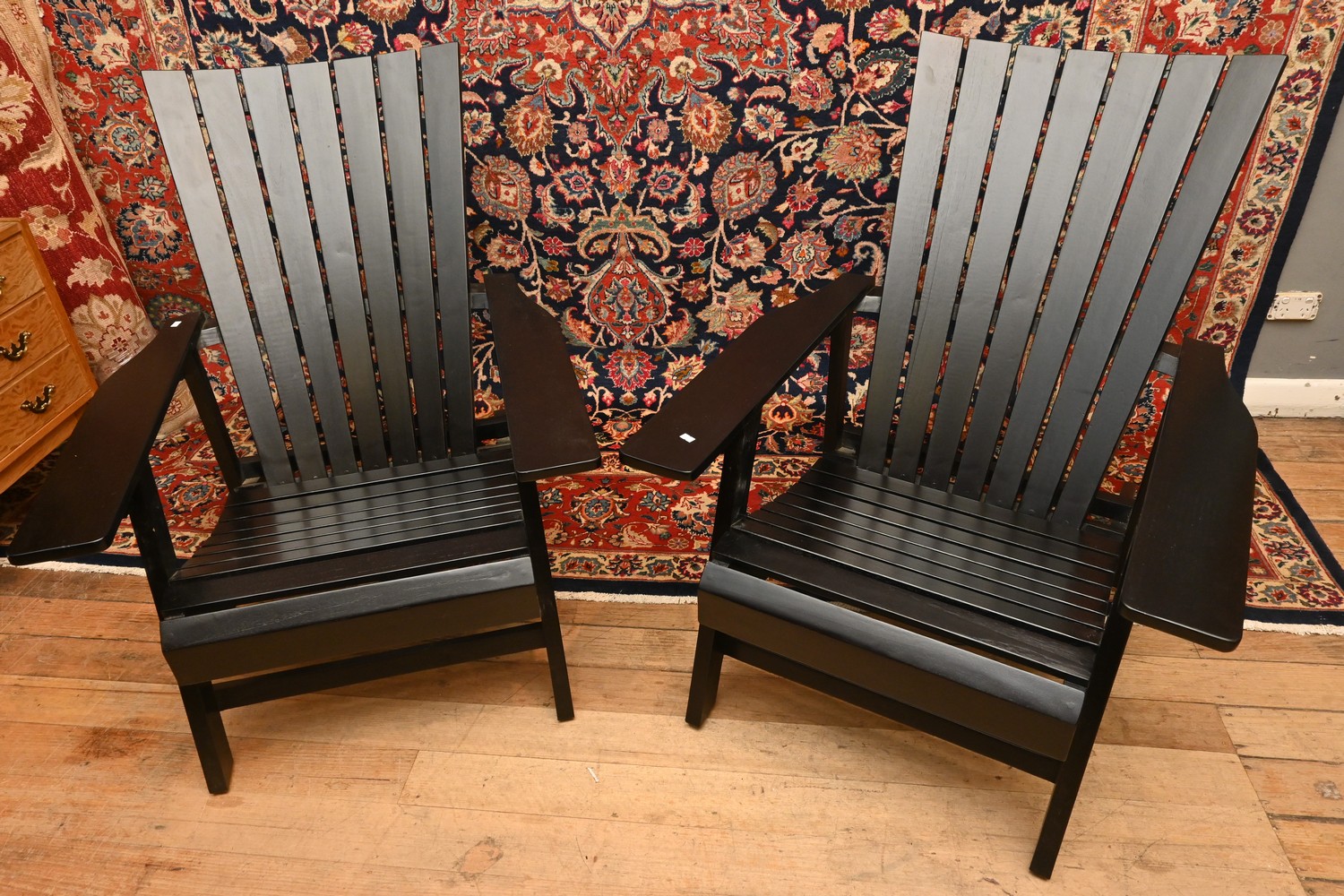 A PAIR OF TEAK ADIRONDAK CHAIRS IN TWO PAK BLACK ( 98H X 81W X 100D CM) (LEONARD JOEL DELIVERY SIZE: X-LARGE)