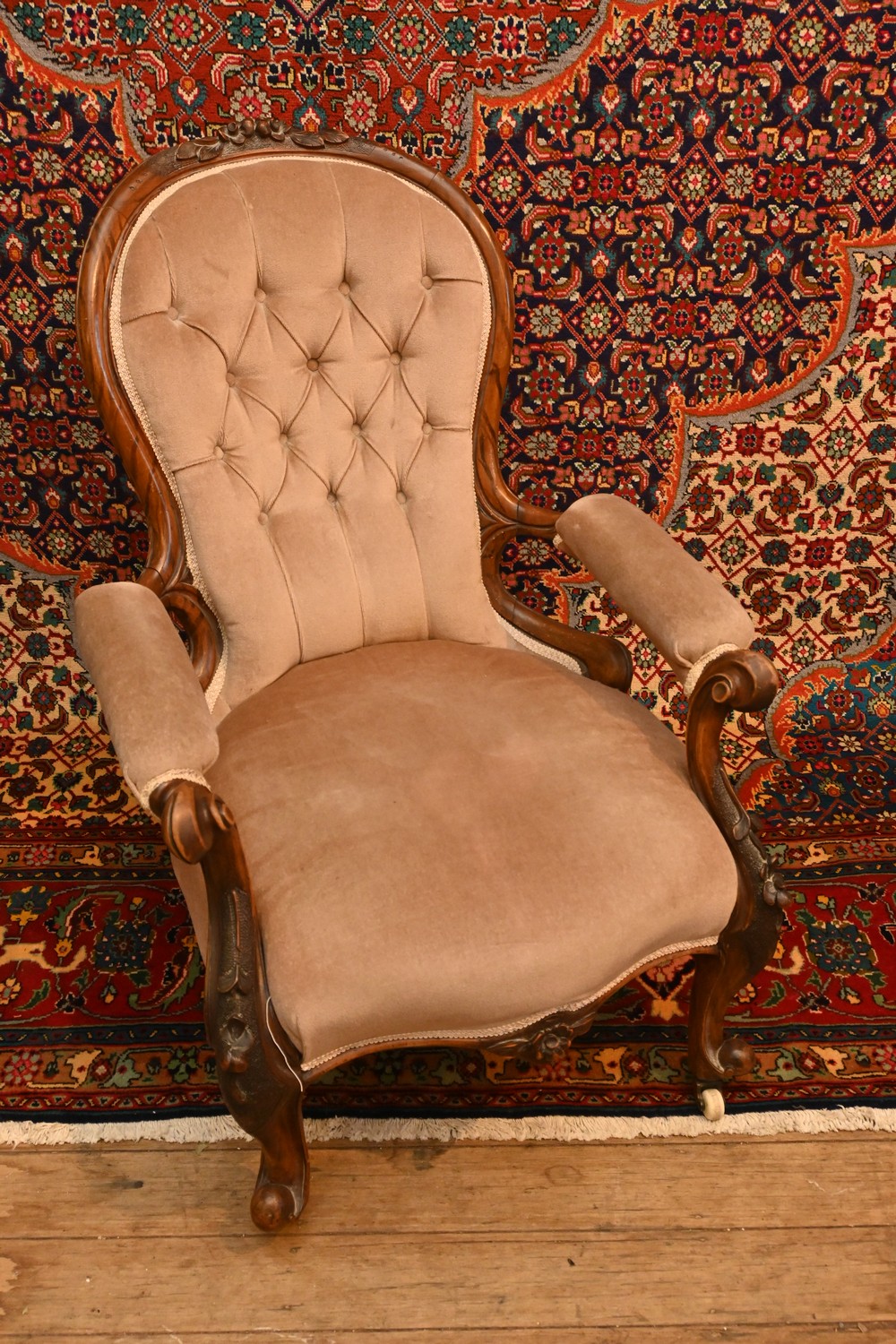A VICTORIAN GENTS CHAIR (A/F) X 69W X 67D CM) (LEONARD JOEL DELIVERY SIZE: LARGE)