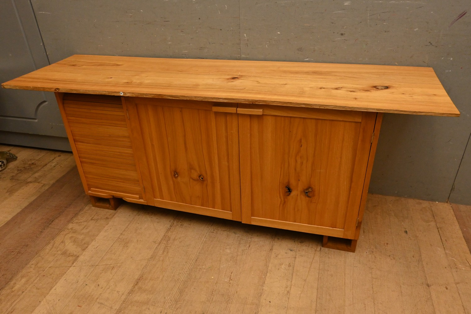 A BESPOKE SIDEBOARD WITH TAMBOUR DOOR ( A/F) ( 72H X 184W X 53D CM) (LEONARD JOEL DELIVERY SIZE: X-LARGE)