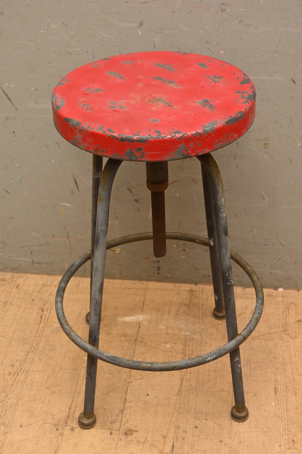 AN INDUSTRIAL HEIGHT ADJUSTABLE STOOL ( 63H X 41 DIAMETER CM) (LEONARD JOEL DELIVERY SIZE: LARGE)