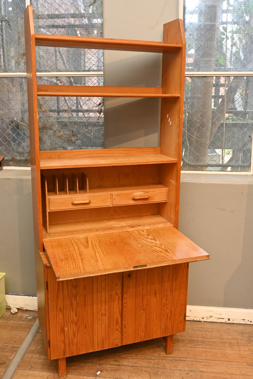 A SWEDISH MID CENTURY BALTIC PINE DROP FRONT SECRETAIRE - NO KEY (A/F) (190W X 80W X 41D CM) (LEONARD JOEL DELIVERY SIZE: X-LARGE)