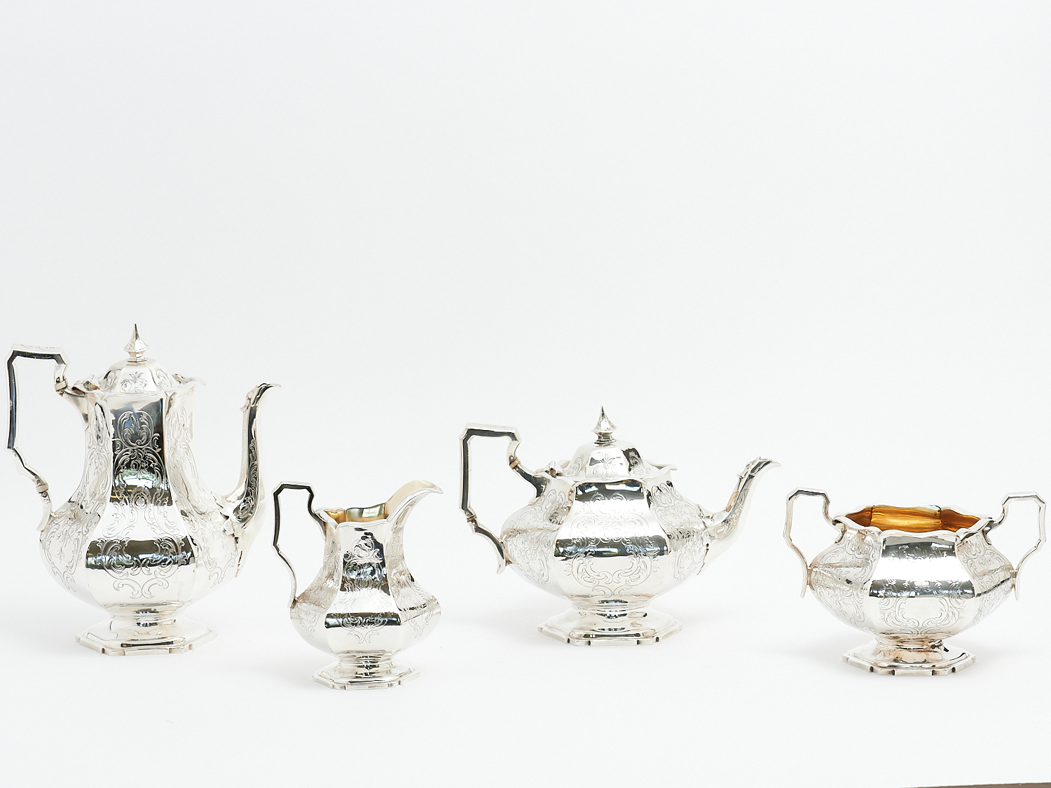 A VICTORIAN FOUR PIECE TEA AND COFFEE SET, HALLMARKED LONDON 1850 BY HENRY HOLLAND (OF HOLLAND ALDWINCKLE AND SLATER), 2220 GRAMS, LEONARD JOEL LOCAL DELIVERY: MEDIUM