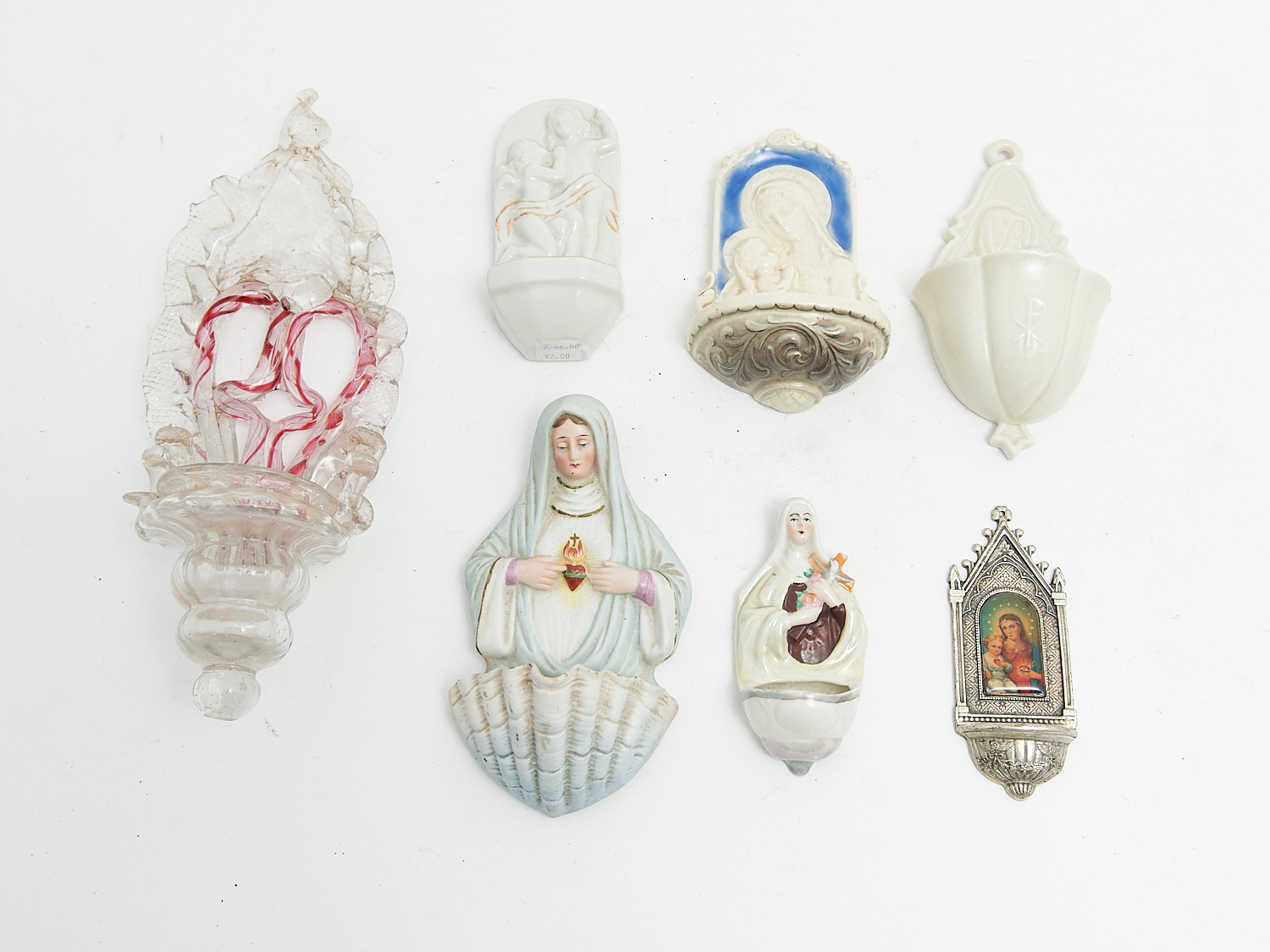 A GROUP OF ASSORTED RELIGIOUS FONTS H.30CM (TALLEST), LEONARD JOEL LOCAL DELIVERY: SMALL