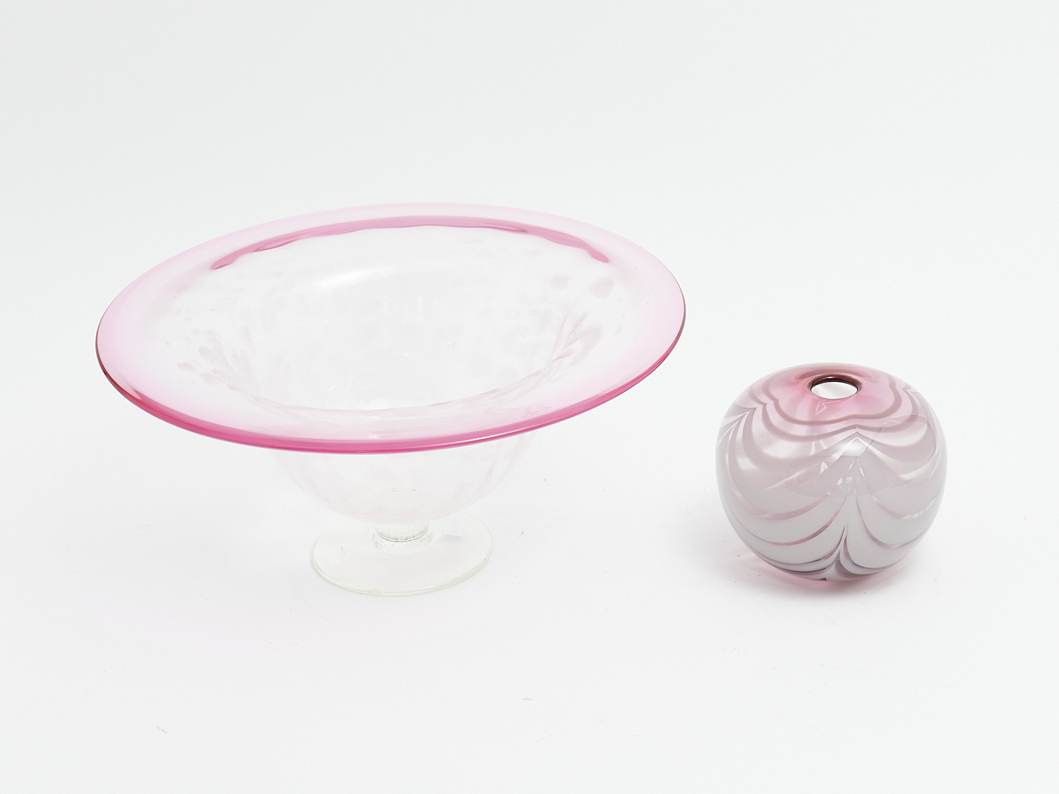 TWO AUSTRALIAN STUDIO GLASS BOWLS BY SCOTT SPENSER AND STEPHEN MORRIS DIA.34CM (LARGEST), LEONARD JOEL LOCAL DELIVERY: MEDIUM