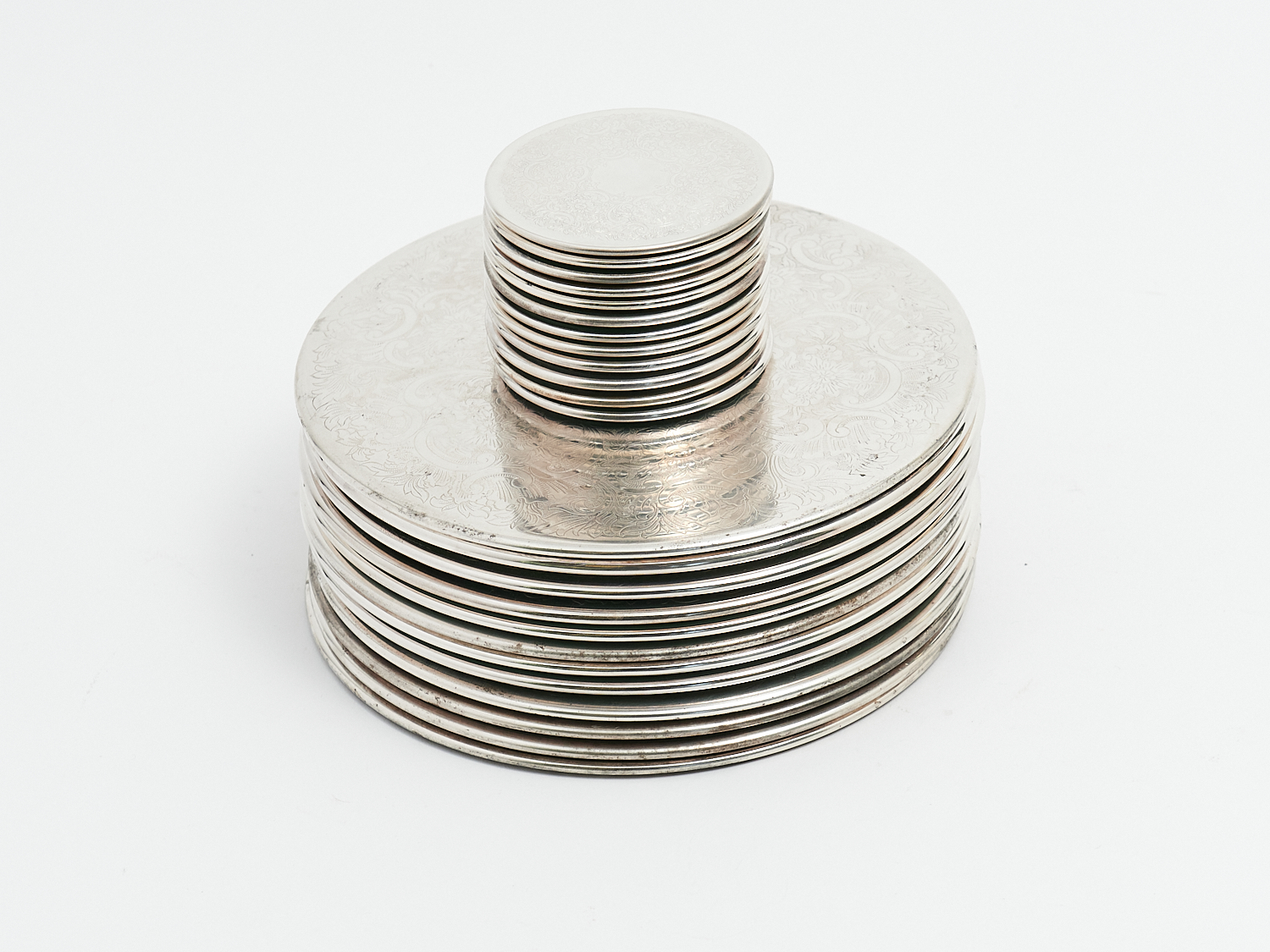 TWELVE STRACHAN SILVER PLATED COASTERS AND TWELVE WINE GLASS COASTERS, LEONARD JOEL LOCAL DELIVERY: SMALL