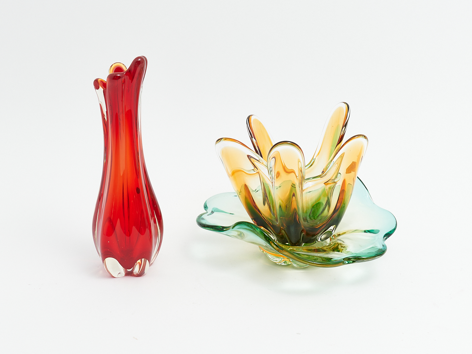 THREE PIECES OF VINTAGE ITALIAN MURANO GLASS INCLUDING BOWLS AND VASE, H.30.5CM (TALLEST), LEONARD JOEL LOCAL DELIVERY: MEDIUM