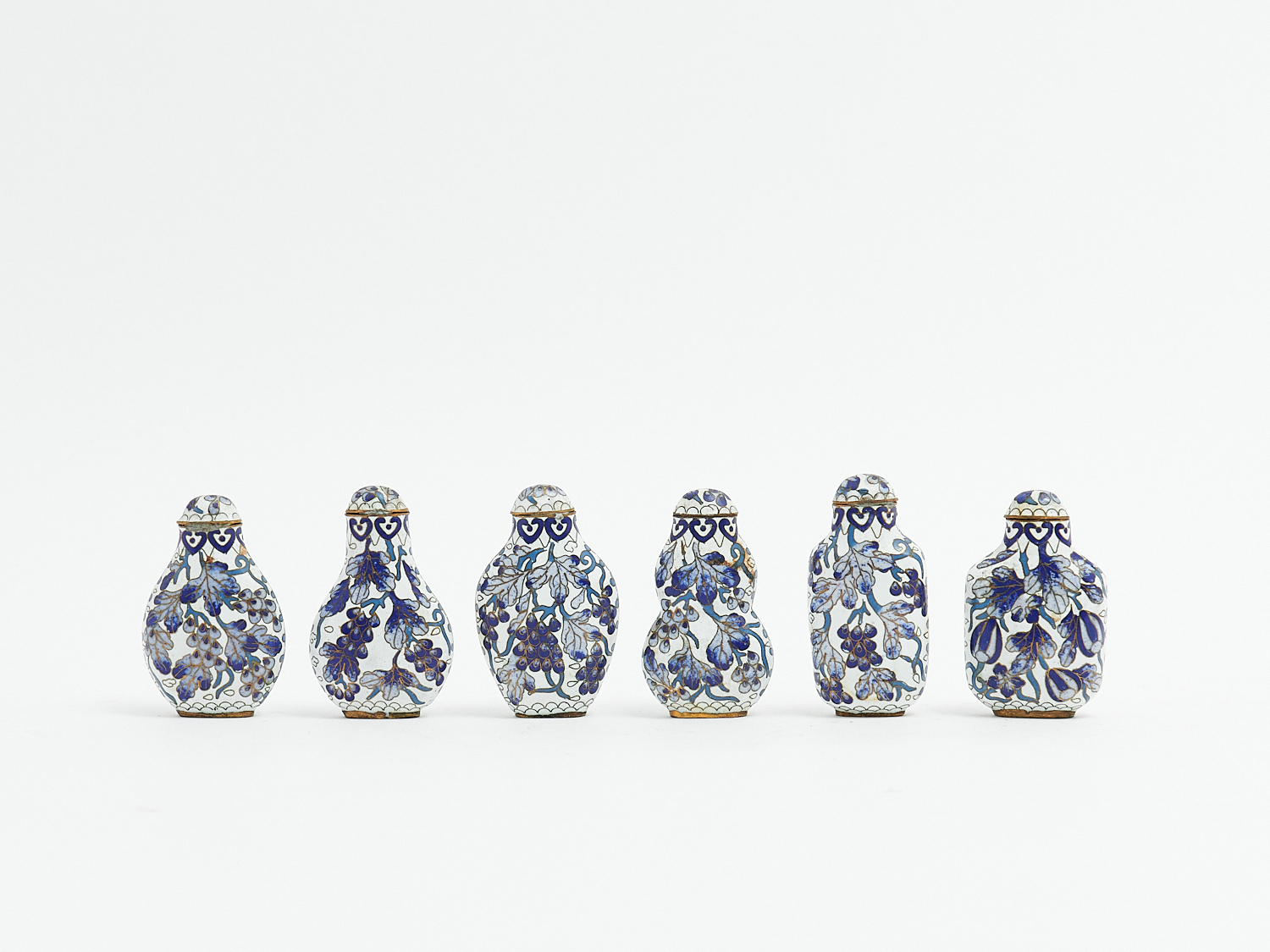 SIX CHINESE CLOISONNE BLUE AND WHITE SNUFF BOTTLES, H.7.5CM, LEONARD JOEL HOME DELIVERY SIZE: SMALL