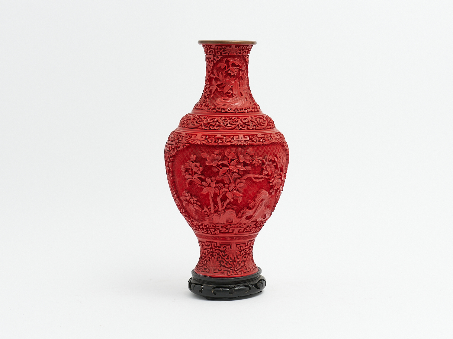 A CHINESE CINNABAR LACQUER STYLE VASE, H.41CM, LEONARD JOEL LOCAL DELIVERY: MEDIUM