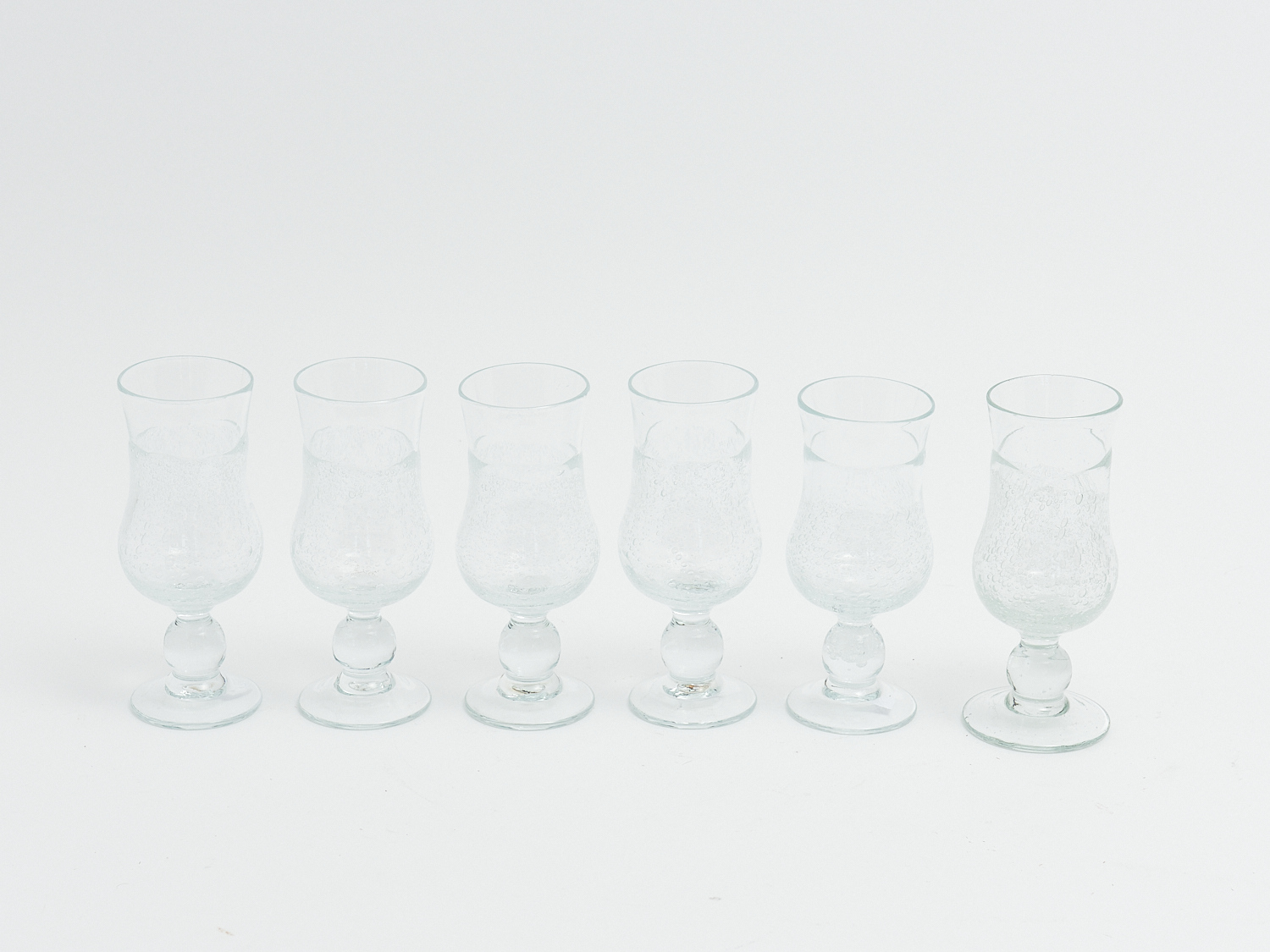 A SET OF SIX AUSTRALIAN STUDIO GLASS STEMMED GLASSES, SIGNED JULIO SANTOS, H.15.5CM, LEONARD JOEL LOCAL DELIVERY: SMALL