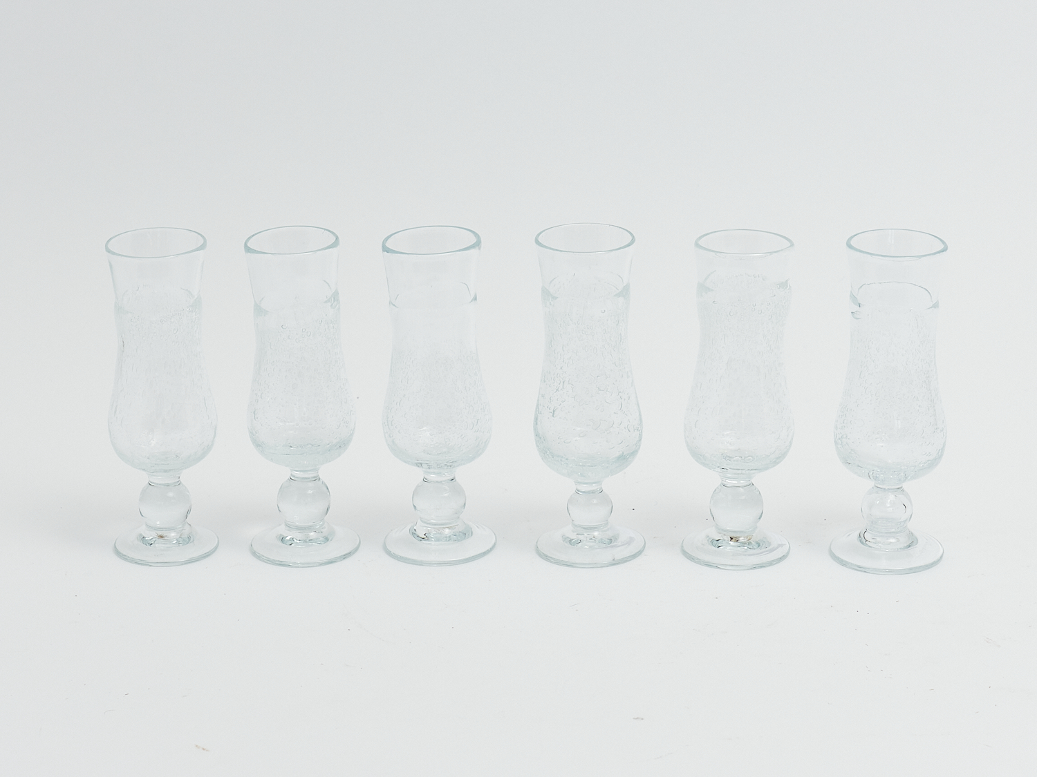 A SET OF SIX AUSTRALIAN STUDIO GLASS STEMMED GLASSES, SIGNED JULIO SANTOS, H.16.5CM, LEONARD JOEL LOCAL DELIVERY: SMALL