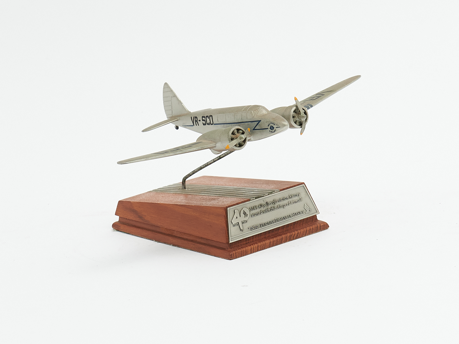 A LIMITED EDITION SELANGOR PEWTER WOODEN BASED SIA 40 YEARS OF AVIATION HISTORY MODEL PLANE, H.13CM X W.15CM, LEONARD JOEL HOME DELIVERY SIZE: SMALL