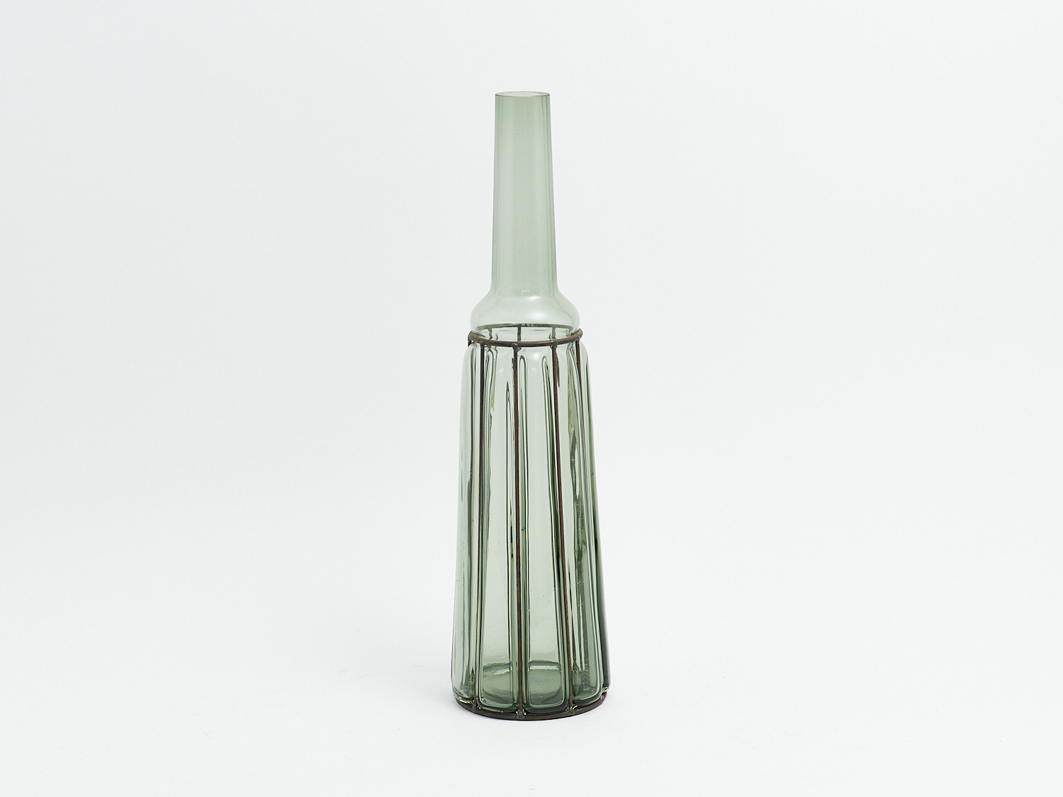 A WIRE CAGED GREY GLASS VASE, H.48CM, LEONARD JOEL LOCAL DELIVERY: MEDIUM