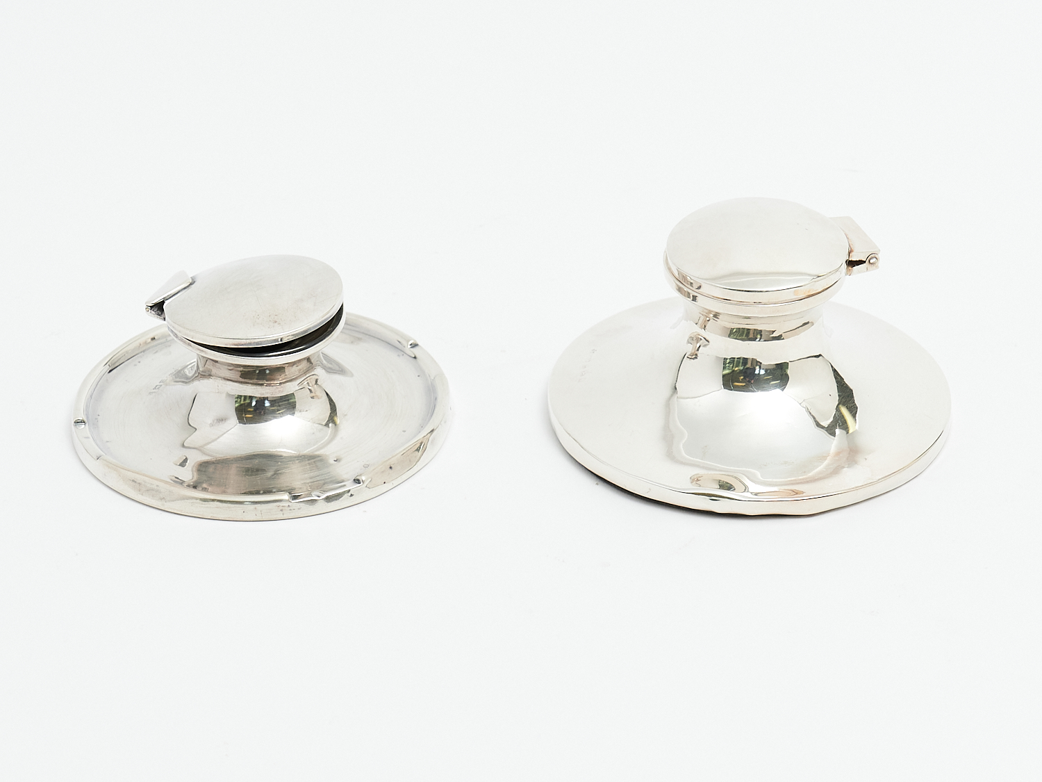TWO STERLING SILVER CAPSTAN SHAPED INKWELLS (A/F), LEONARD JOEL LOCAL DELIVERY: SMALL